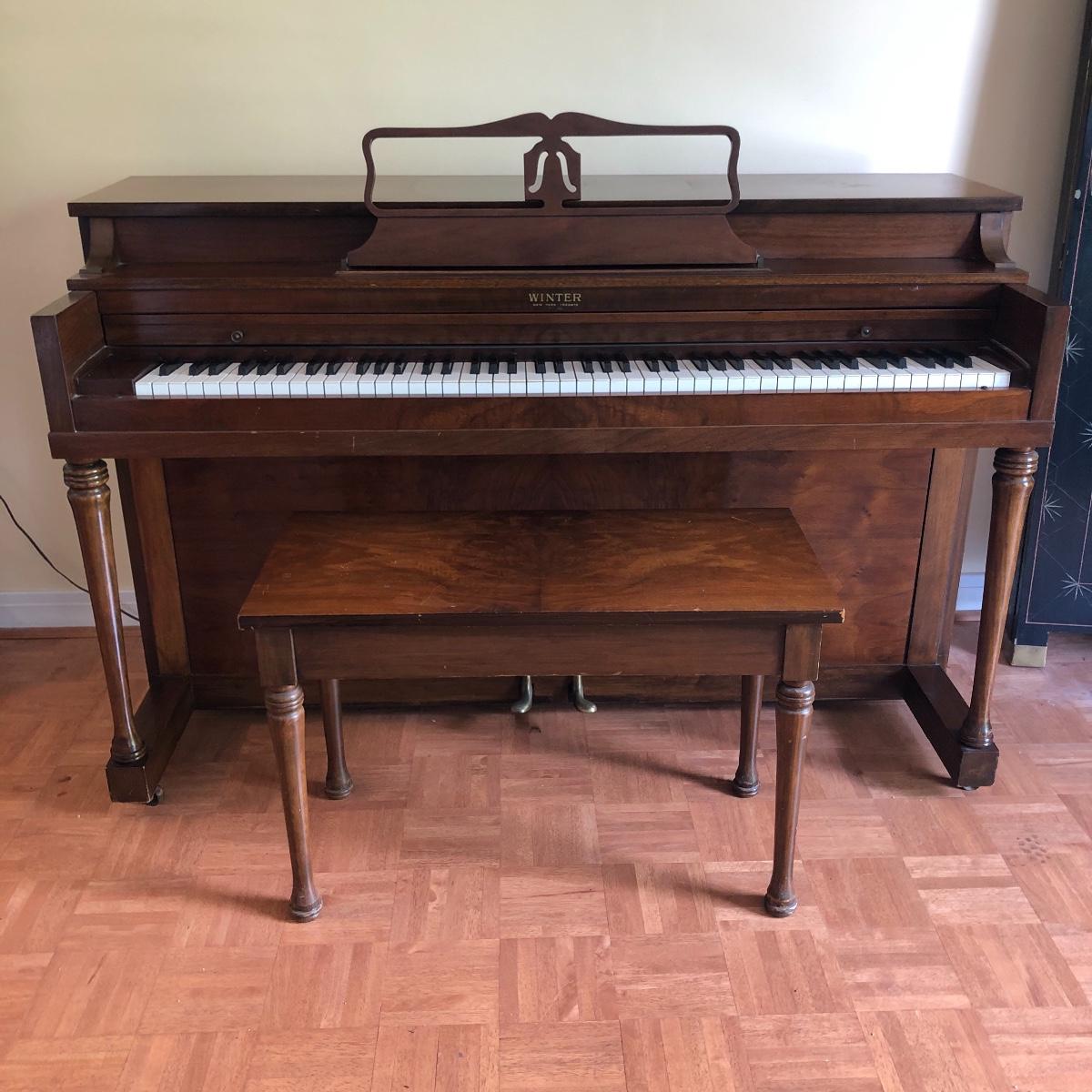 Relax and enjoy the sound of this lovely piano. Piano worked when tested. This Winter piano is serial # 286638 and comes with a bench. Piano has scratches on top, see pictures.