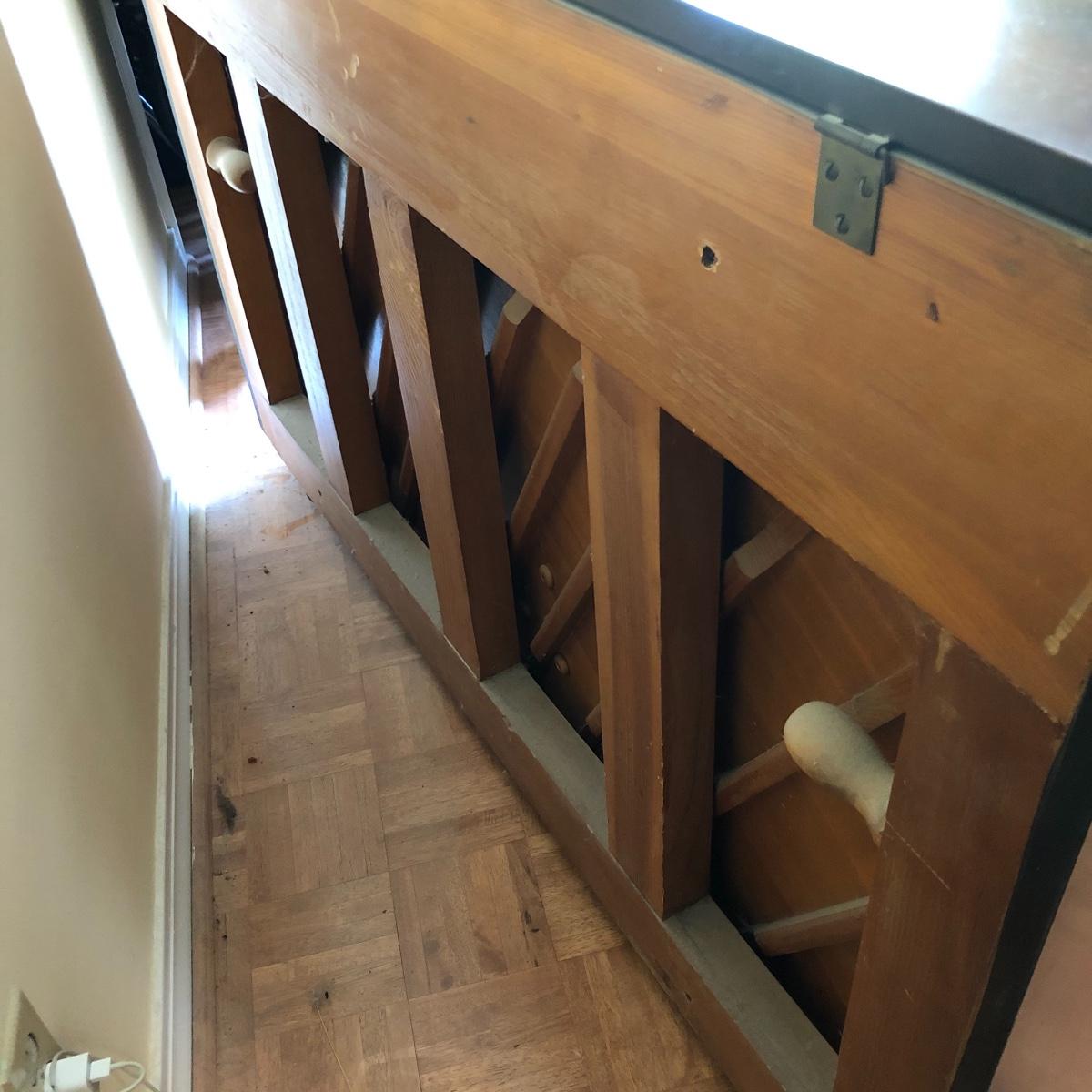 Piano measures 24” x 57” x 36.5”. Bring help to load this item as it is heavy. You will need to go down a winding cement outdoor staircase to your car.