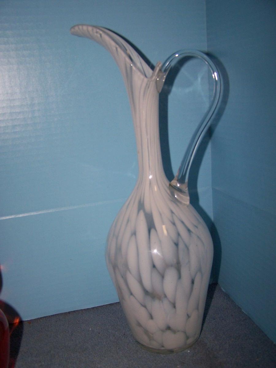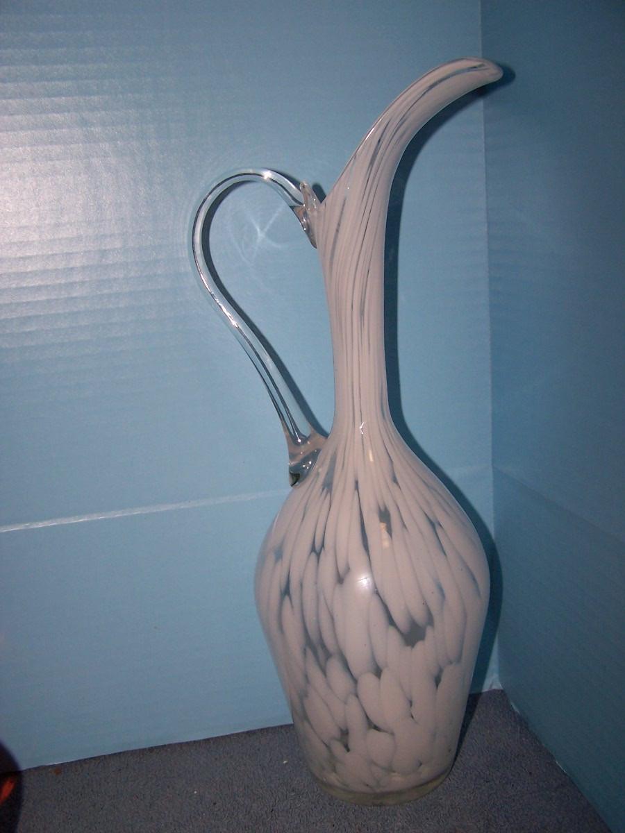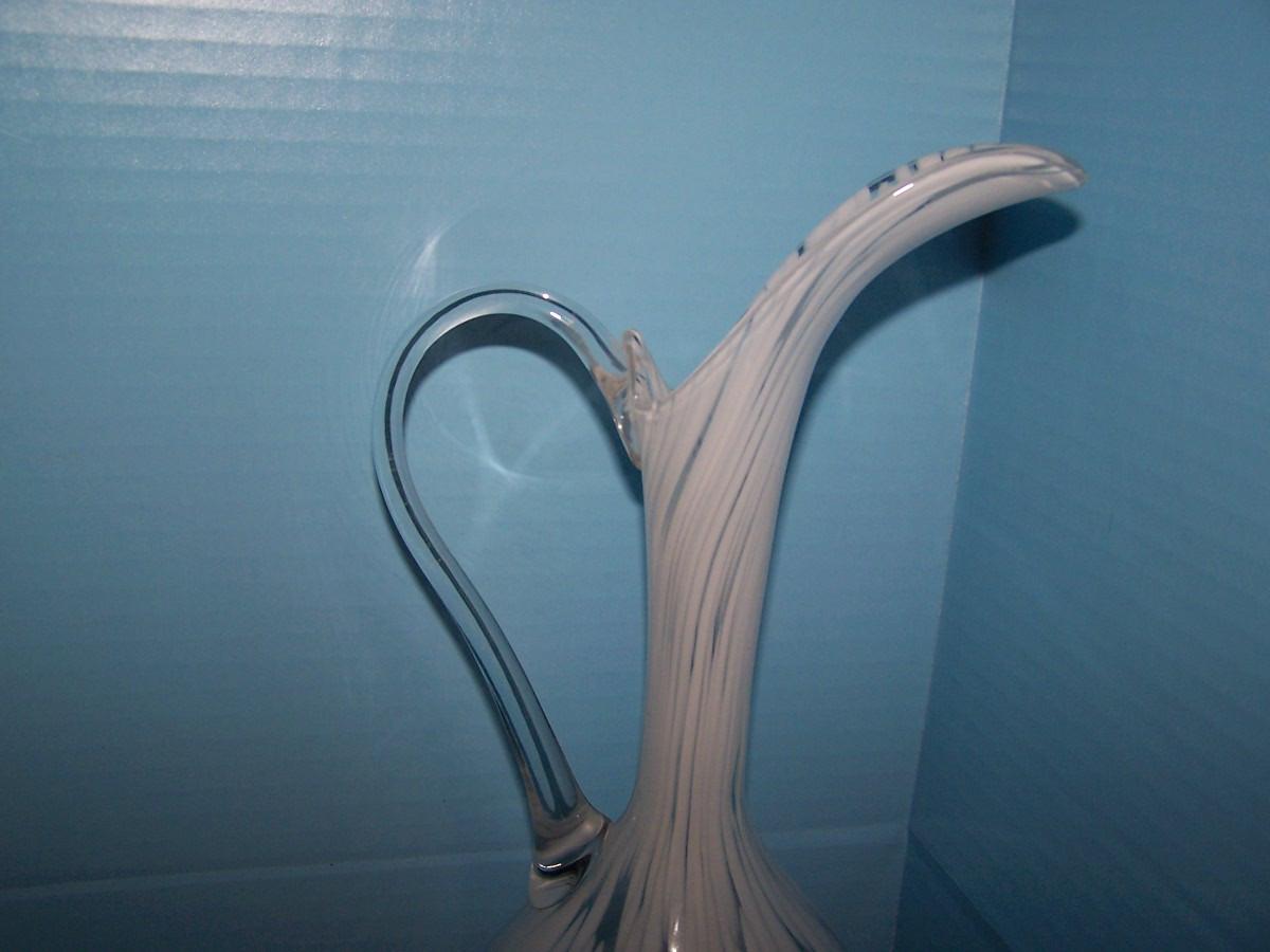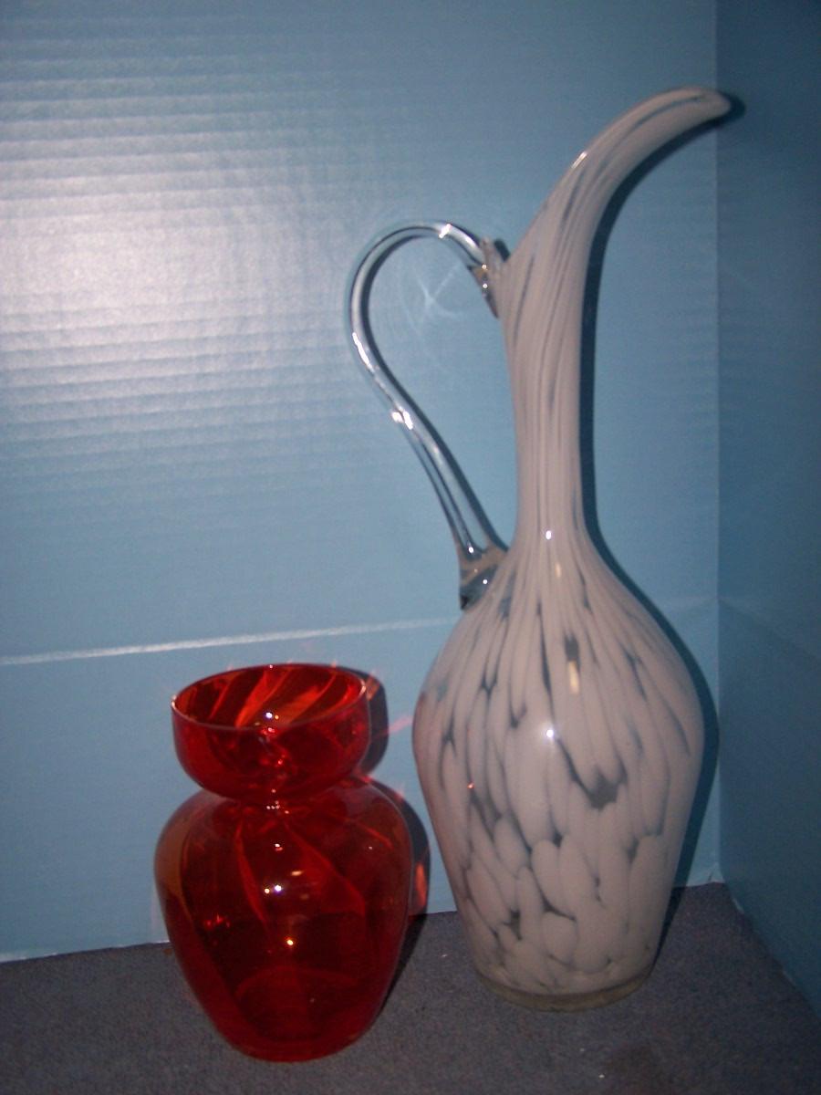 WONDERFUL VINTAGE MCM ART GLASS TALL EWER & VASE UNMARKED EWER IS 15 INCHES TALL LIGHT WEAR