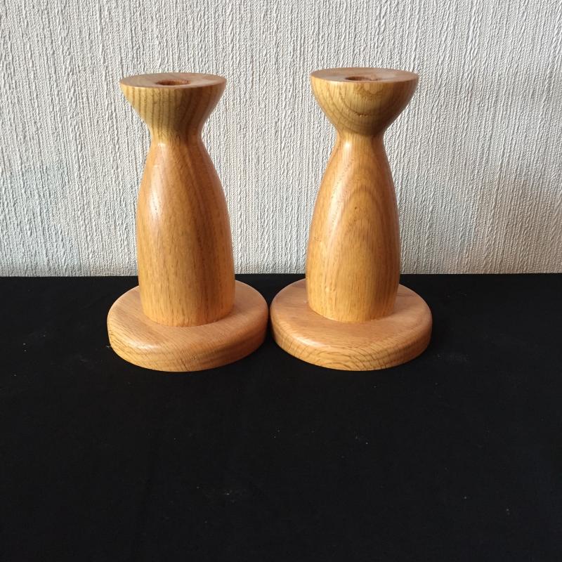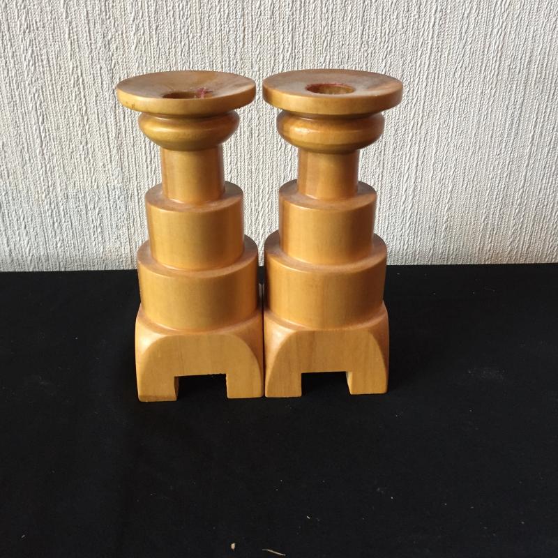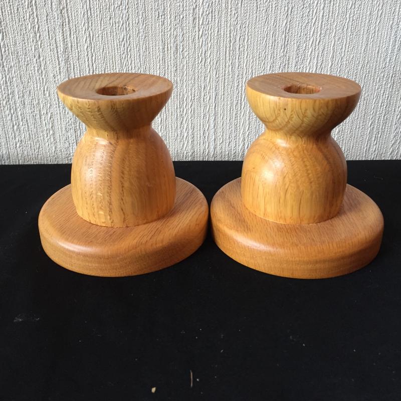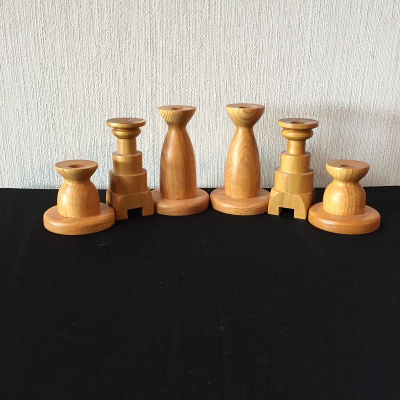 Three Pairs of Wooden Candle Holders. Light up your life with these hand made candle holders.