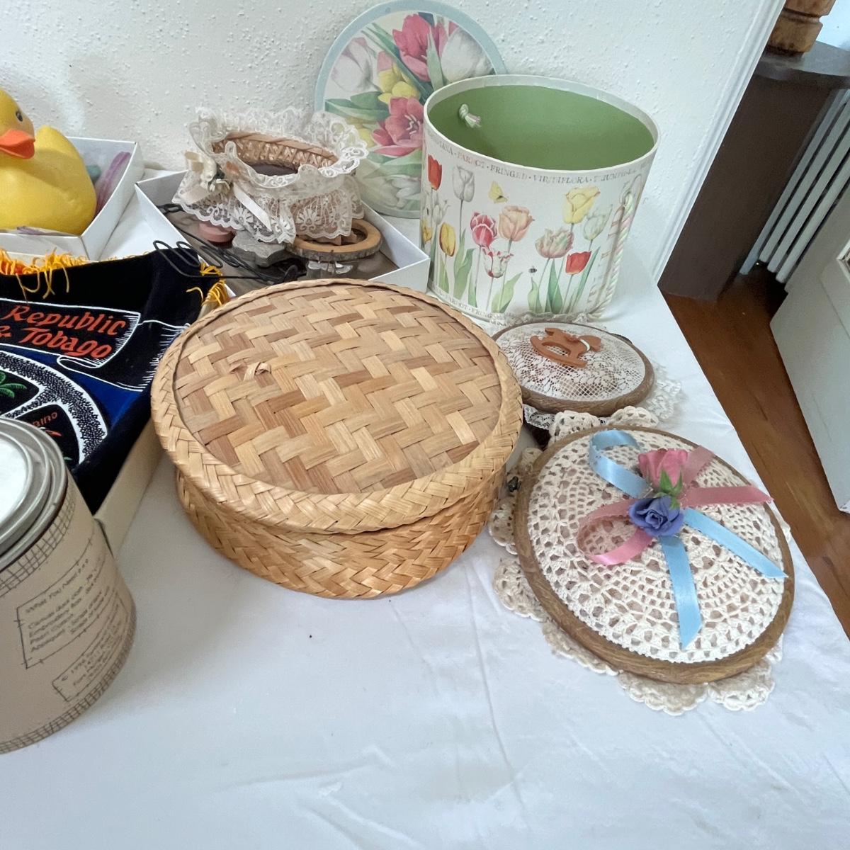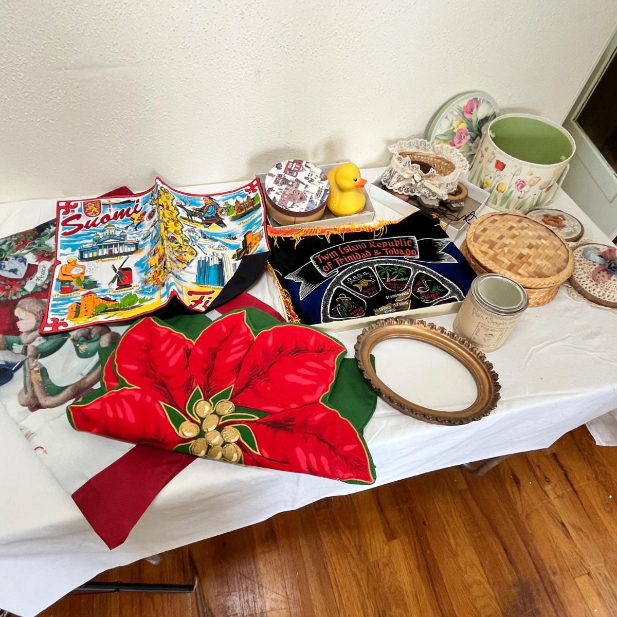 8. Sizes are approximate, you can estimate as our lot number signs are 3.5" long. Also we use an 18" & 36" measuring stick.  We try on certain things to do actual measurements. No guarantees on actual sizes, we try our best!