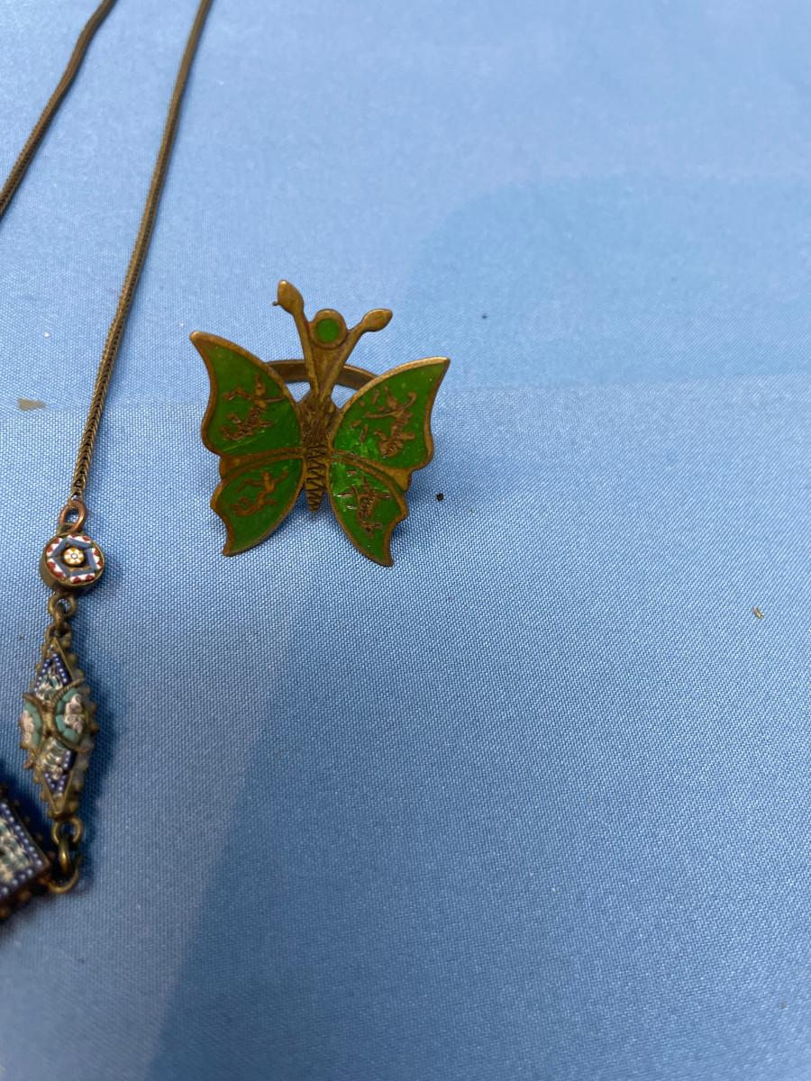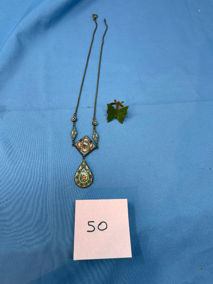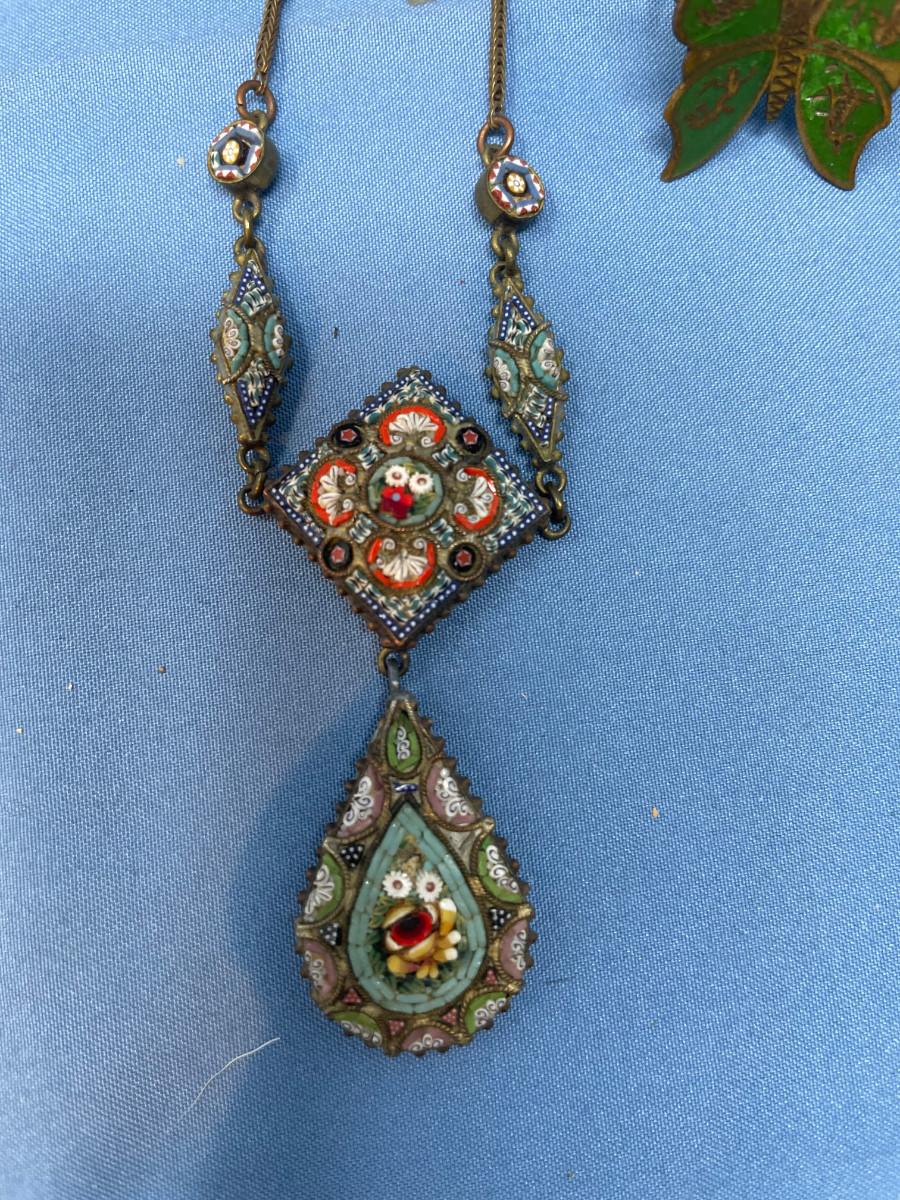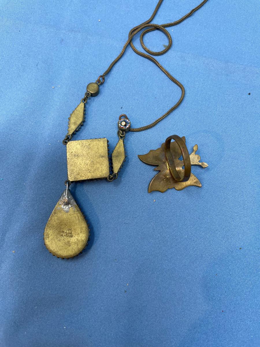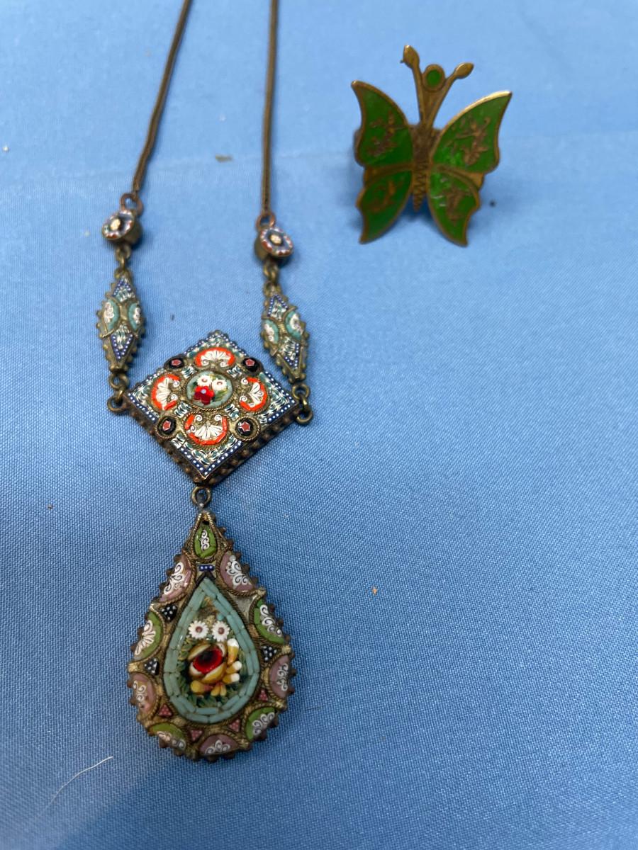 lot 50 Micro mosaic necklace & Siam Brass Ring