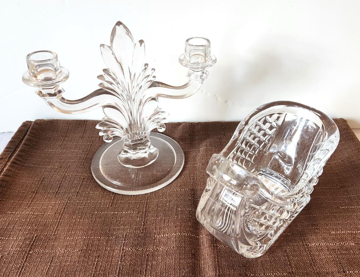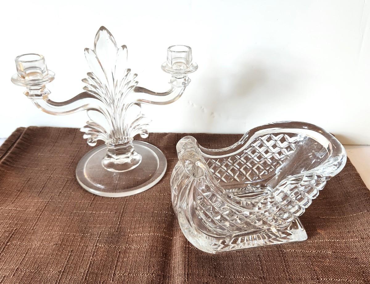 Lot #50 2 Piece Glass lot - 2 arm candelabra and Santa's Sleigh