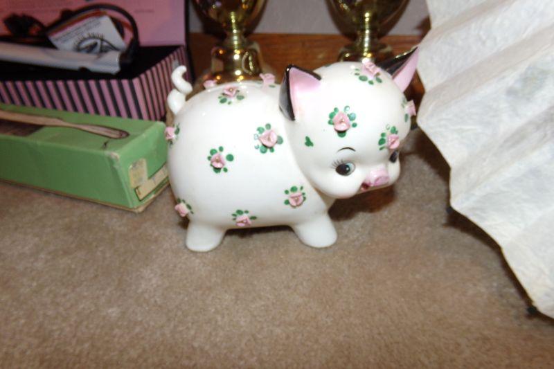 Vintage ADORABLE Napco Piggy Bank Ceramic Japan Figurine Pink Roses C2176A 1956