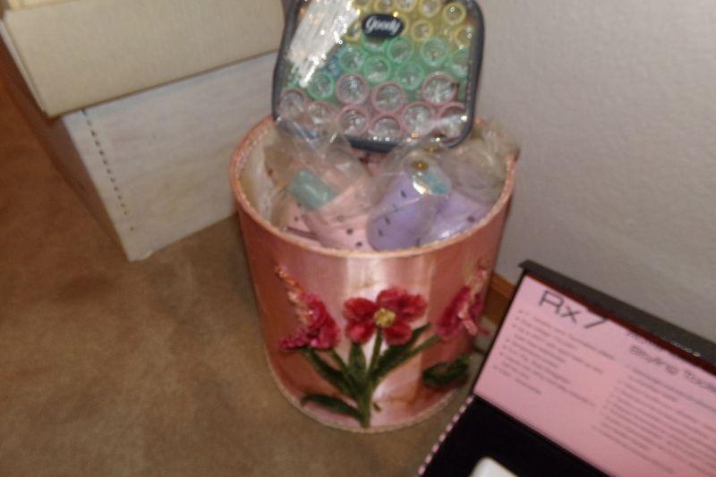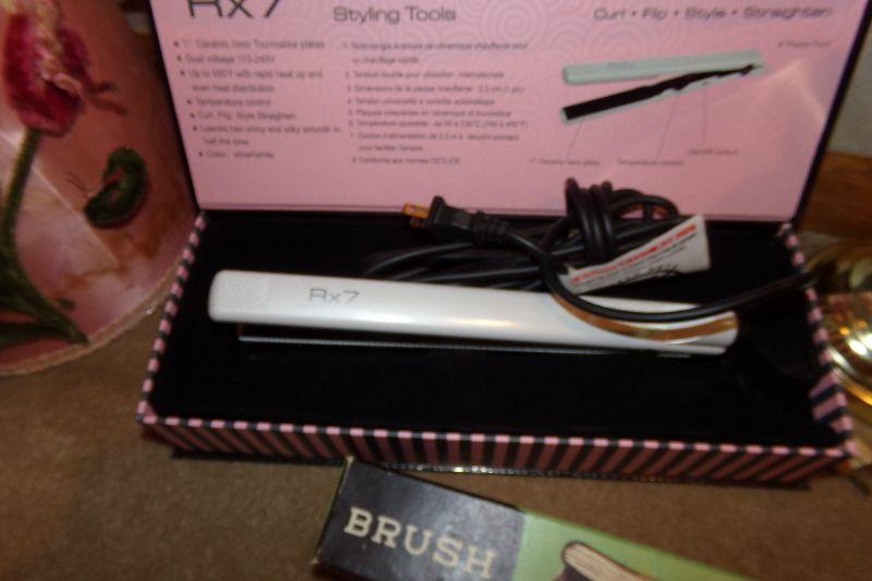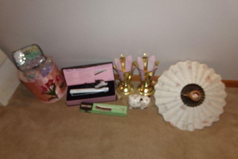 RX 7 HAIR STRAIGHTENER, TWO GOBLETS, FANCY UMBRELLA HANGING LIGHT