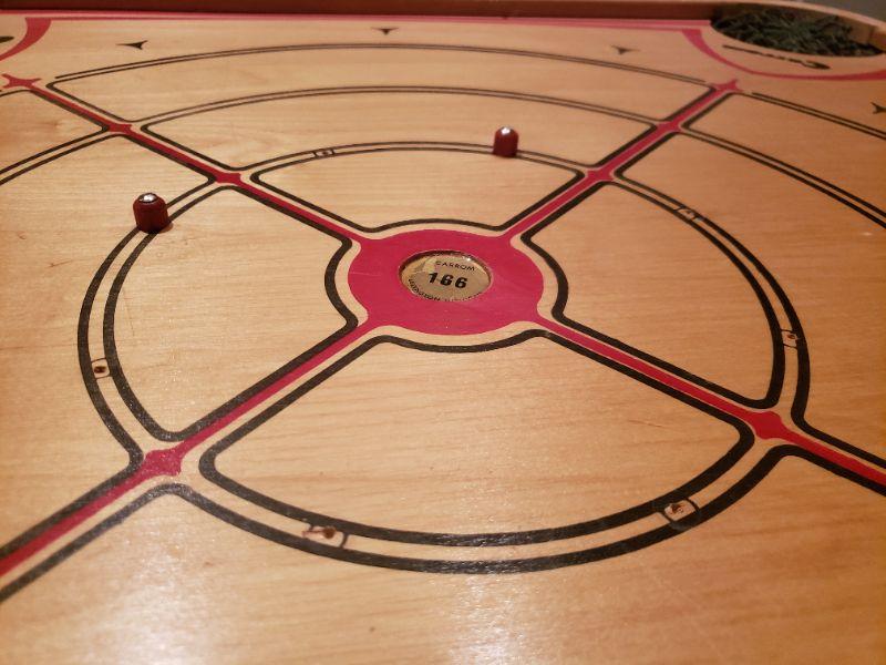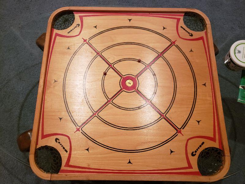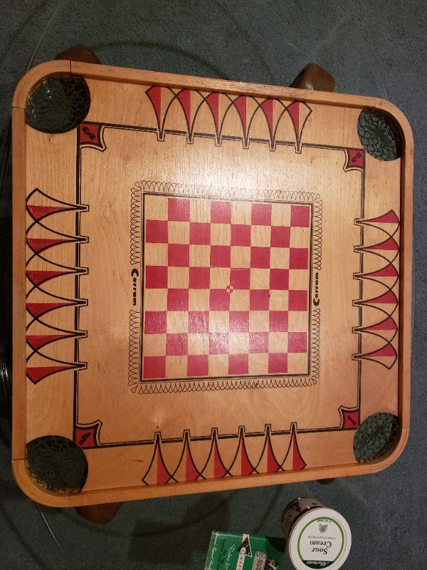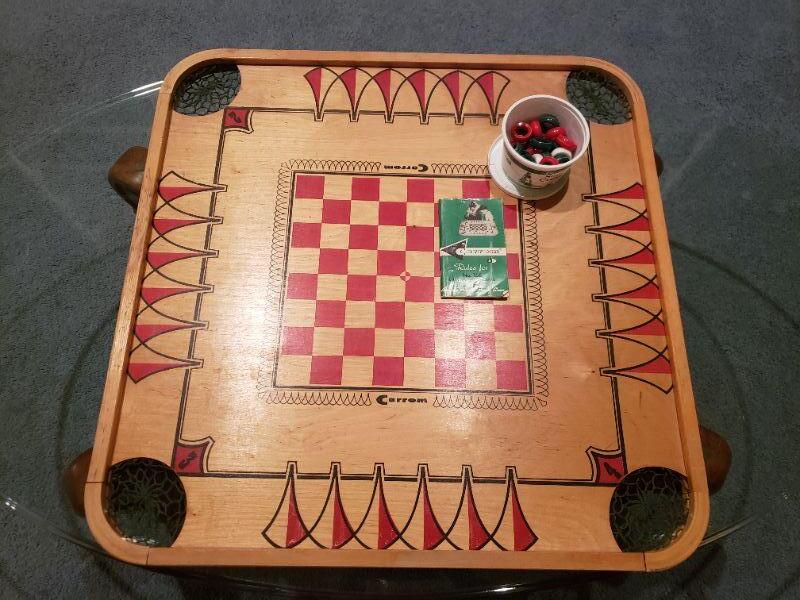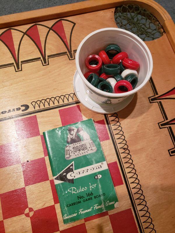 Lot 50: Vintage Carrom Game Board, Instruction Book & Pieces