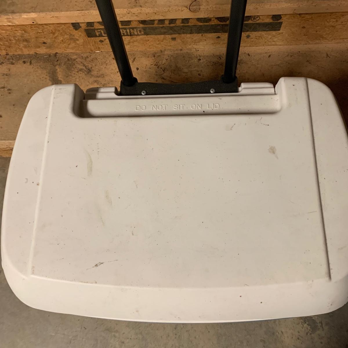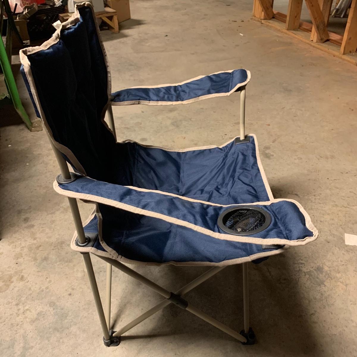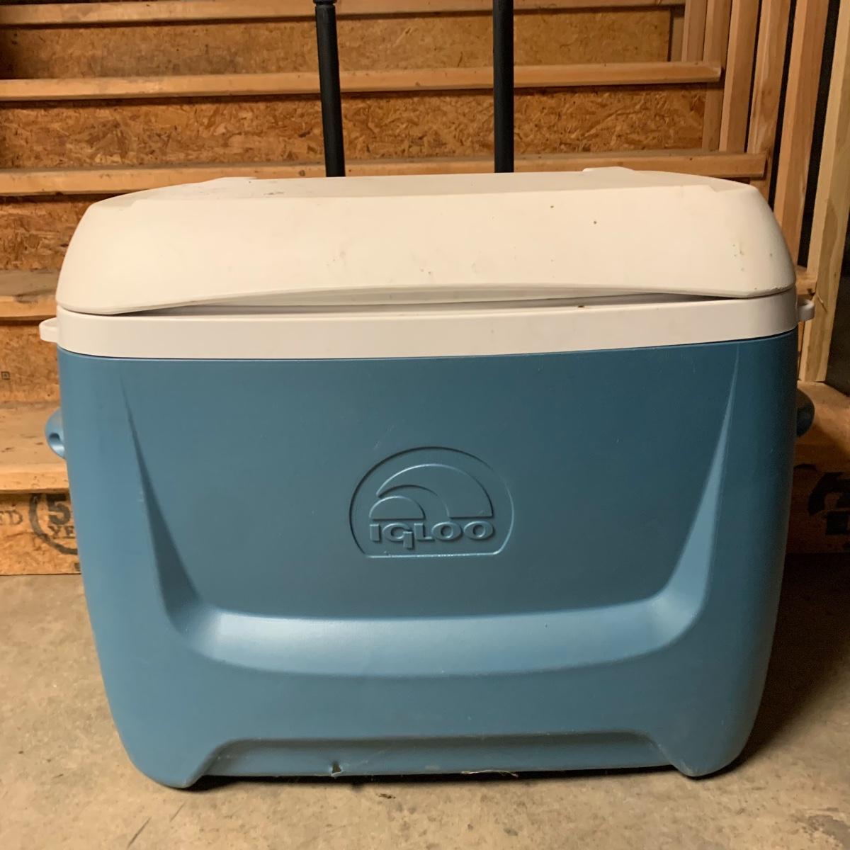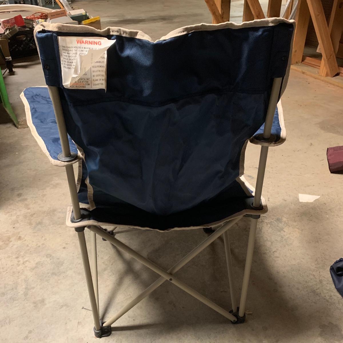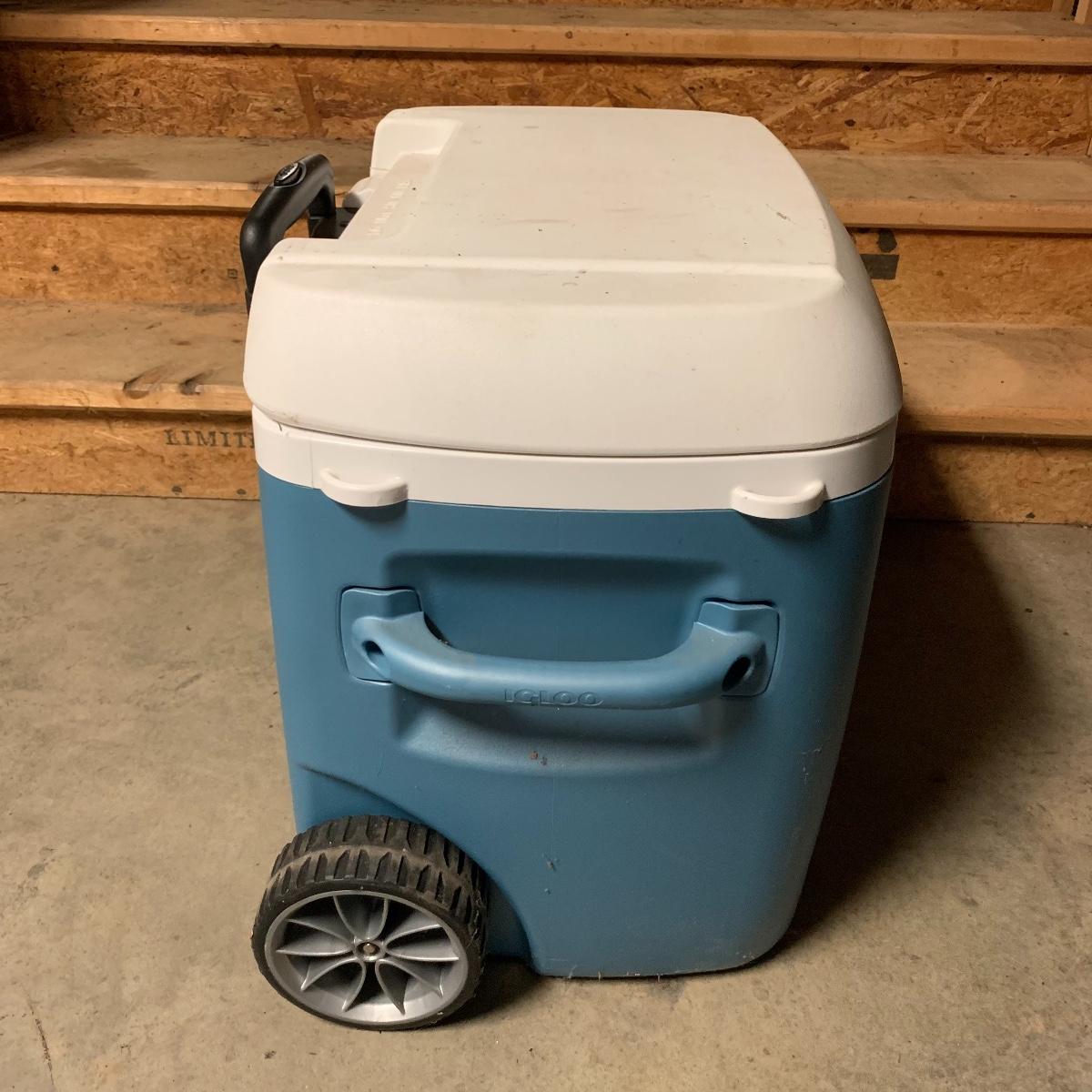 This lot includes cooking / grilling supplies, a vintage metal first aid kit box (no supplies), a lantern, two water jugs, a Coleman air bed, coolers, camping chairs, and more. One of the chairs is by Ozark Trail. All chairs appear to be in good condition. One of the coolers is by Igloo and has wheels. It measures about 16in x 25in x 21in. The other cooler also has wheels. The larger water jug (blue) measures about 14in x 26in. The Coleman air bed is a twin double high bed and comes with instructions and an electric air pump. Local pick up only.