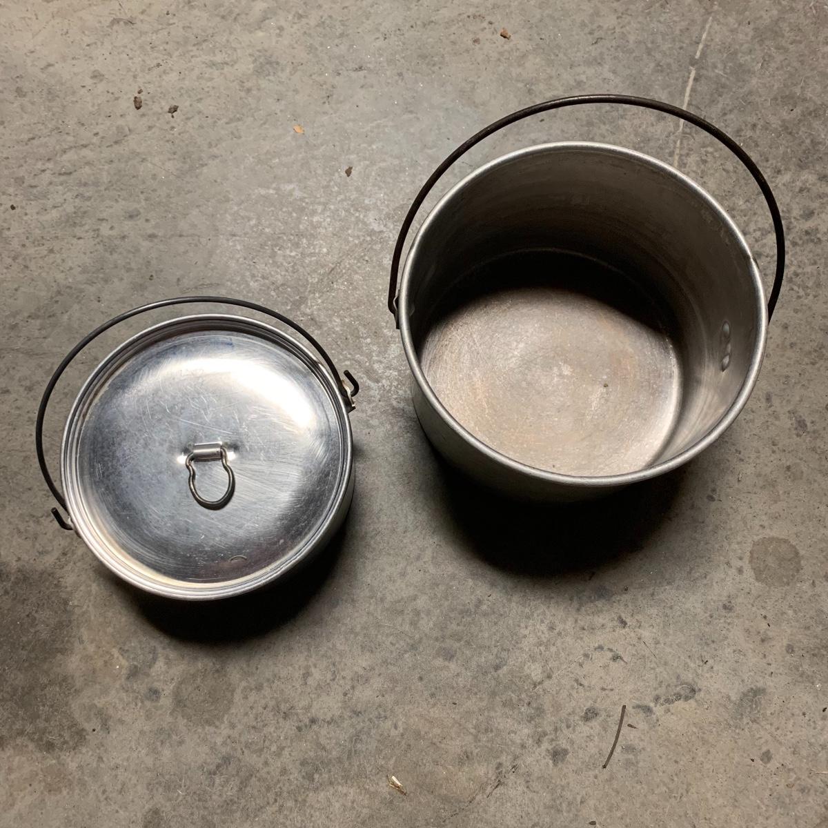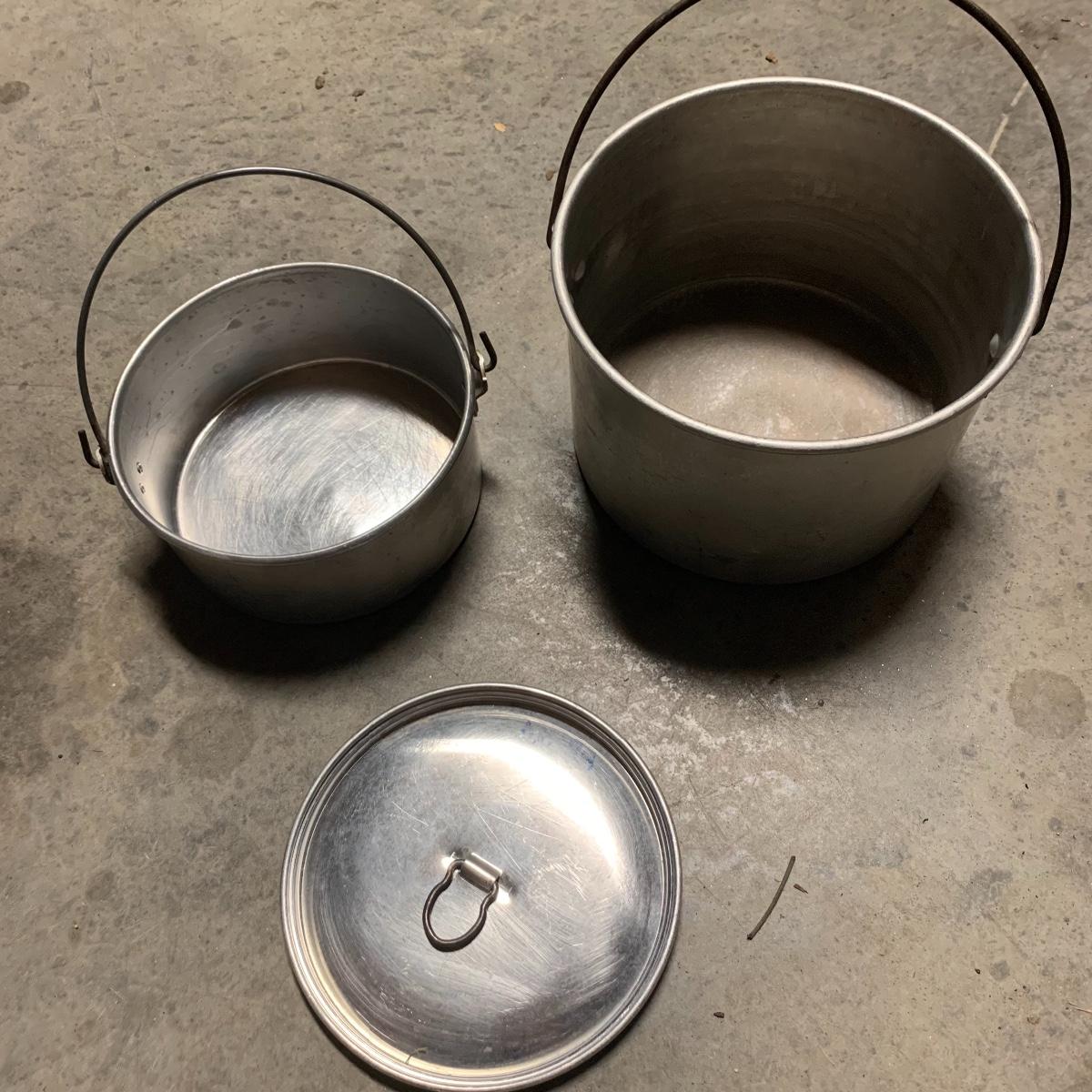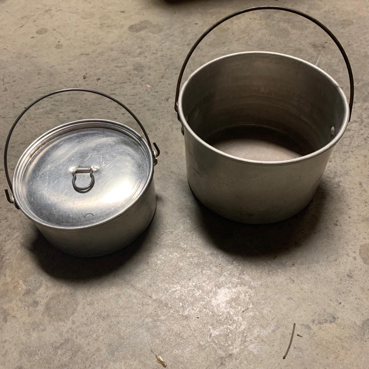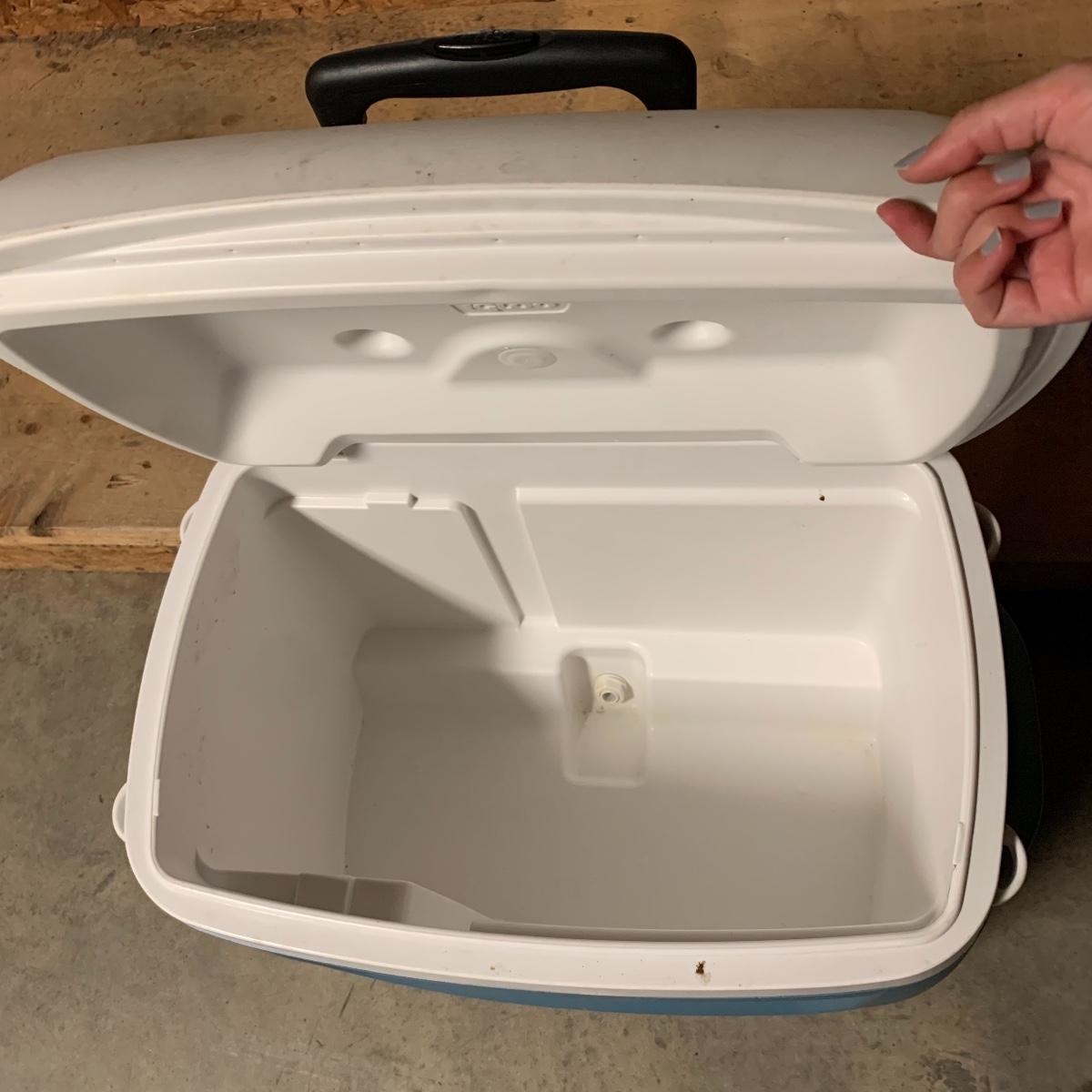 This lot includes cooking / grilling supplies, a vintage metal first aid kit box (no supplies), a lantern, two water jugs, a Coleman air bed, coolers, camping chairs, and more. One of the chairs is by Ozark Trail. All chairs appear to be in good condition. One of the coolers is by Igloo and has wheels. It measures about 16in x 25in x 21in. The other cooler also has wheels. The larger water jug (blue) measures about 14in x 26in. The Coleman air bed is a twin double high bed and comes with instructions and an electric air pump. Local pick up only.