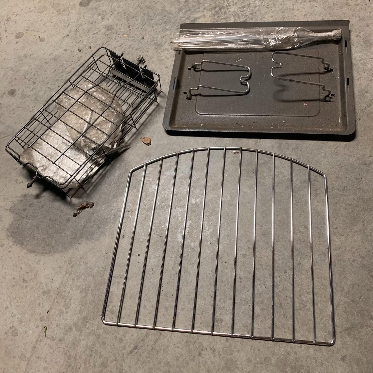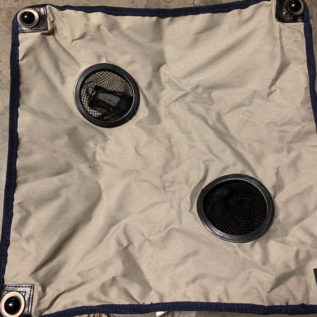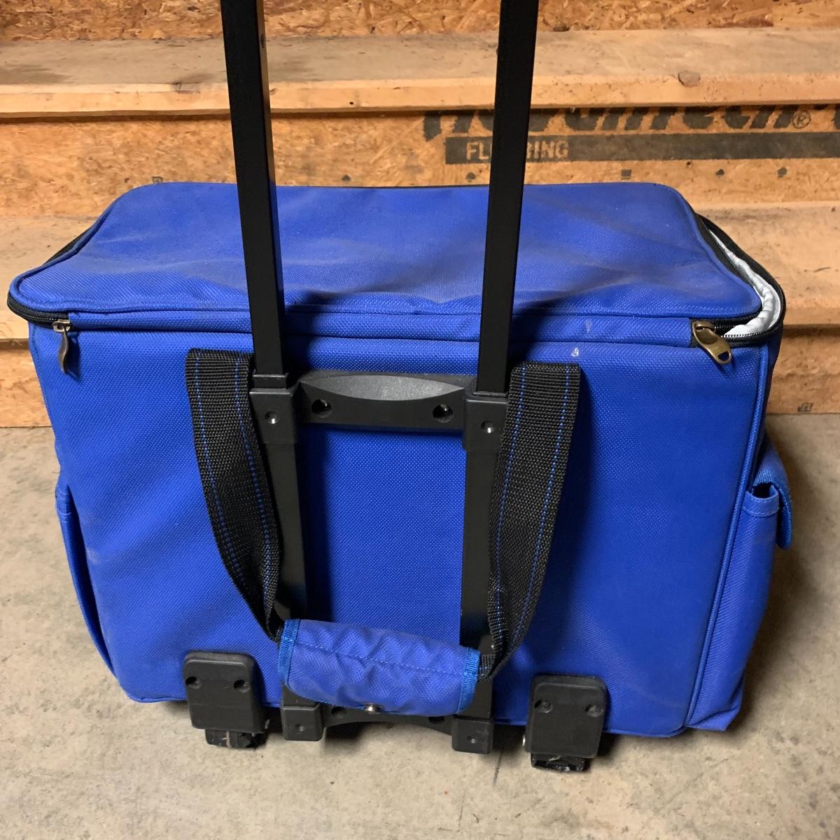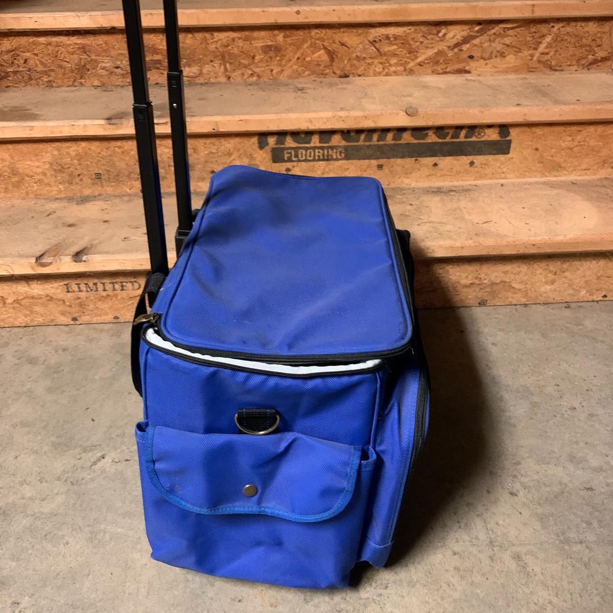 This lot includes cooking / grilling supplies, a vintage metal first aid kit box (no supplies), a lantern, two water jugs, a Coleman air bed, coolers, camping chairs, and more. One of the chairs is by Ozark Trail. All chairs appear to be in good condition. One of the coolers is by Igloo and has wheels. It measures about 16in x 25in x 21in. The other cooler also has wheels. The larger water jug (blue) measures about 14in x 26in. The Coleman air bed is a twin double high bed and comes with instructions and an electric air pump. Local pick up only.