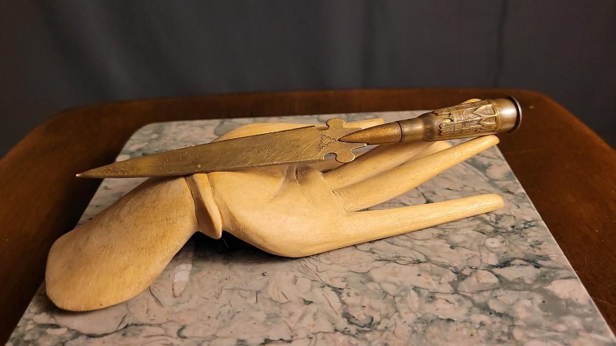 Lot 50: Vintage Trench Folk Art Ammunition Cartridge Dagger Letter Opener REIMS France WW2