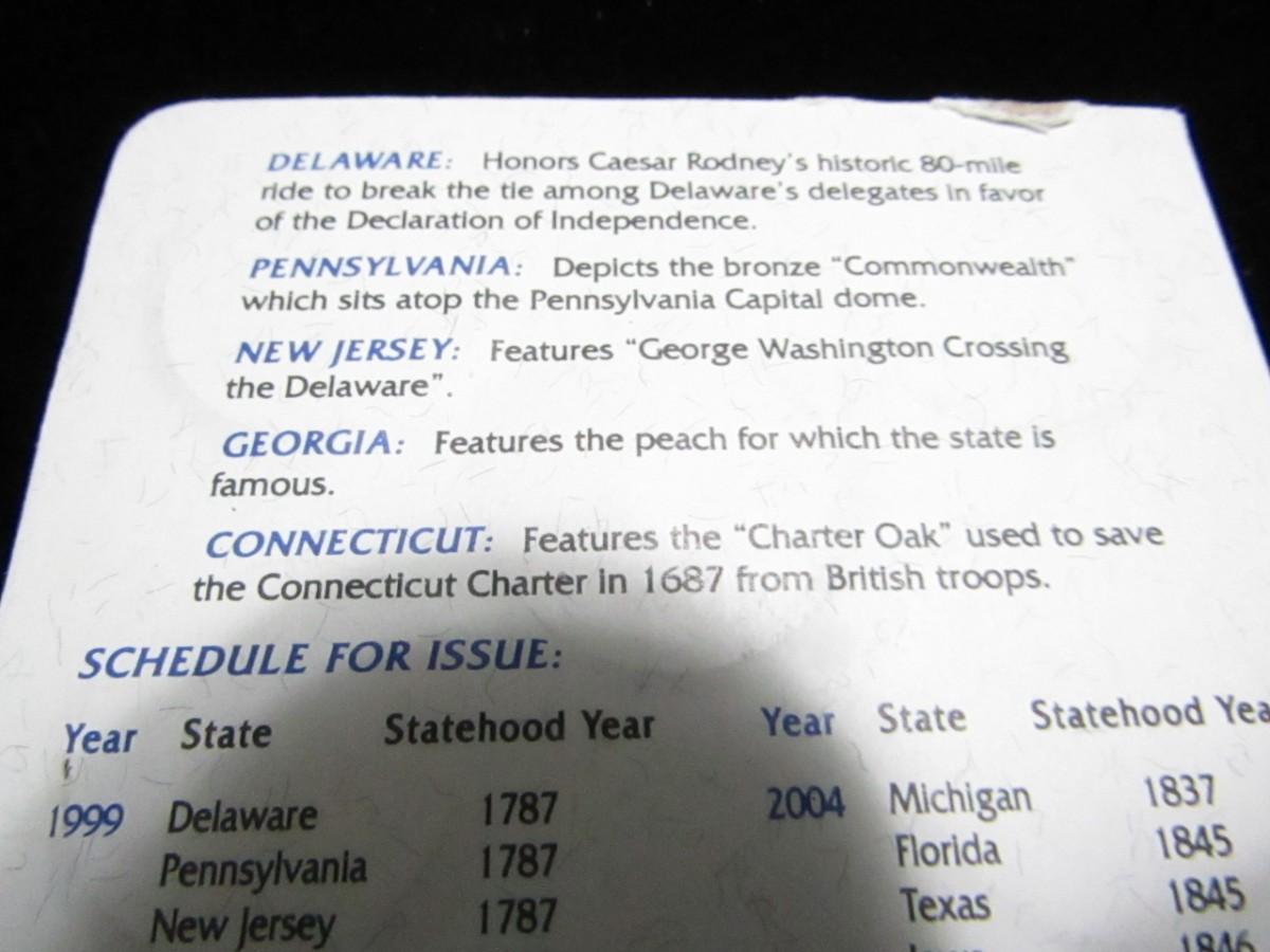 LOT 50 COMMEMORATIVE STATE QUARTERS OF 1999