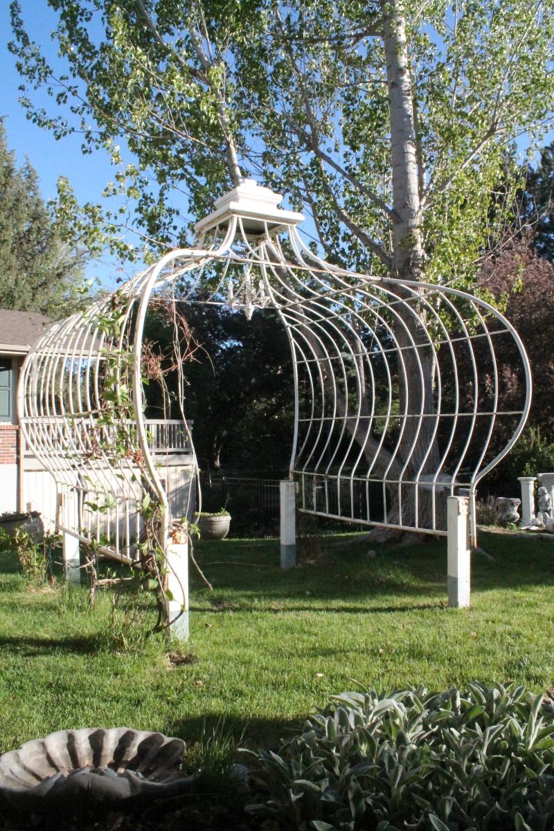 This beautiful Jewish Wedding Metal Gazebo is a rare find and is ready to move via the numerous screw-down mount points allowing for easy loading/removal onto a trailer. This would work well in any garden setting but could also easily be used to enhance your Event/Photography Company. Included is a photo of the current owners previous installation of the Gazebo. It is truly unique and beautiful! You will be responsible for taking it a part and moving it. Please bring adequate help, this will require several people. The top comes off in 2 pieces leaving the sides separated. It is 4 total pieces.