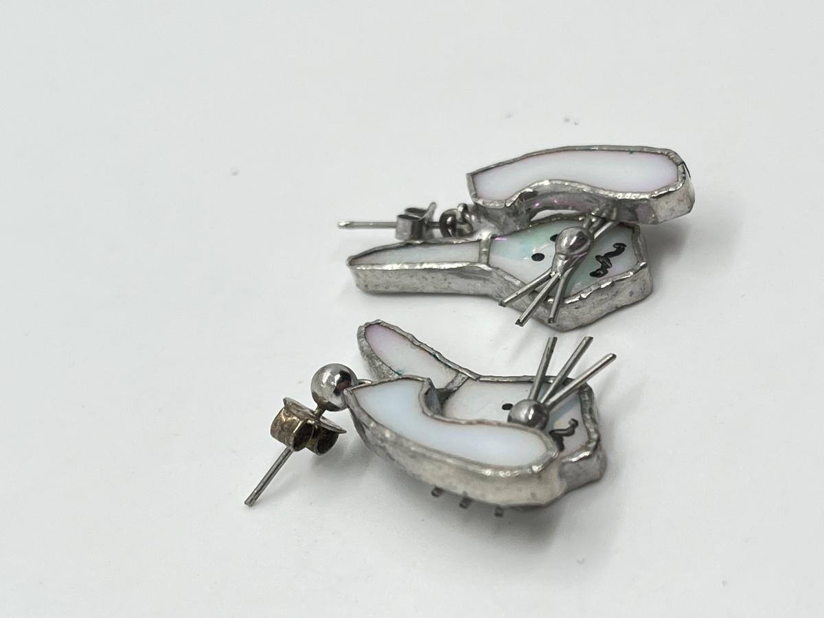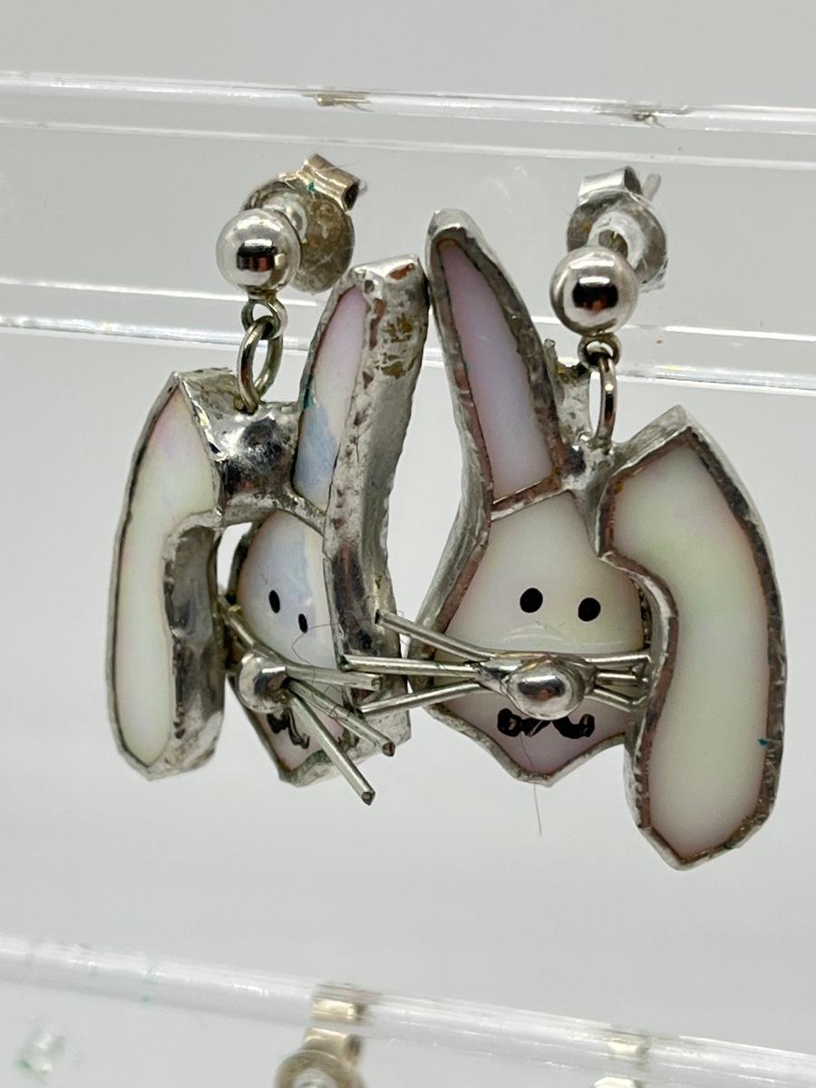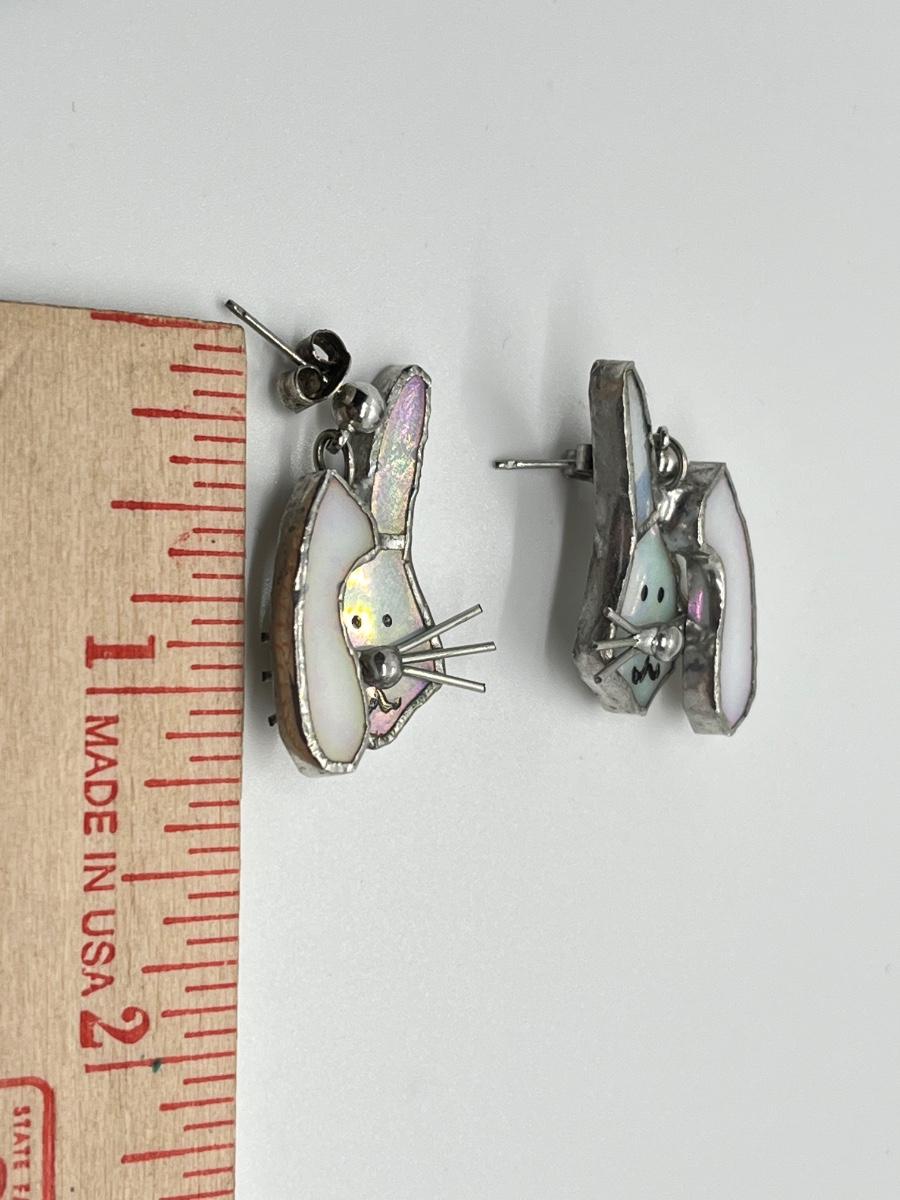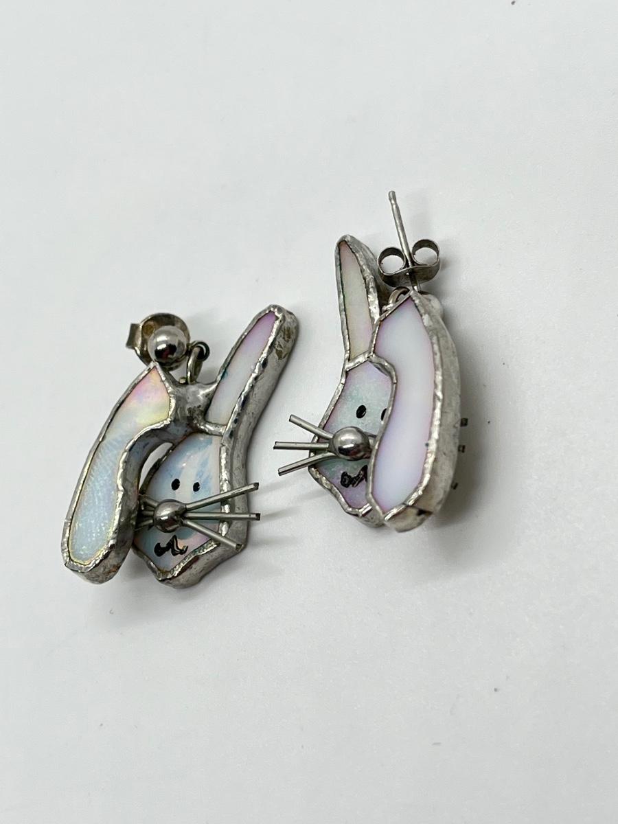 LOT 50: Sterling Silver Pierced Earrings - Stained Glass Bunny Rabbits & Hoops with Removable Ball Danglers