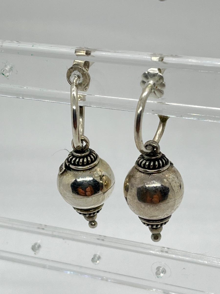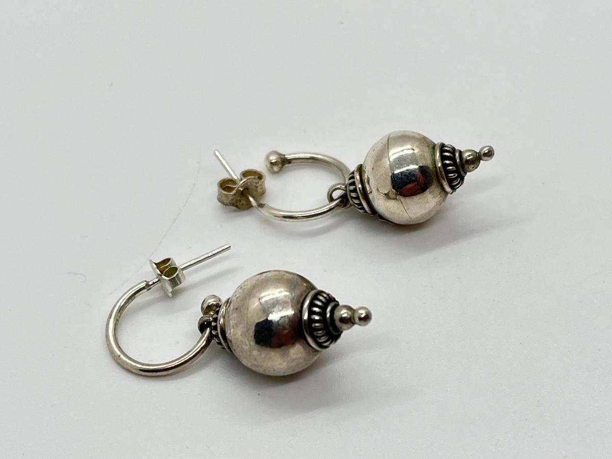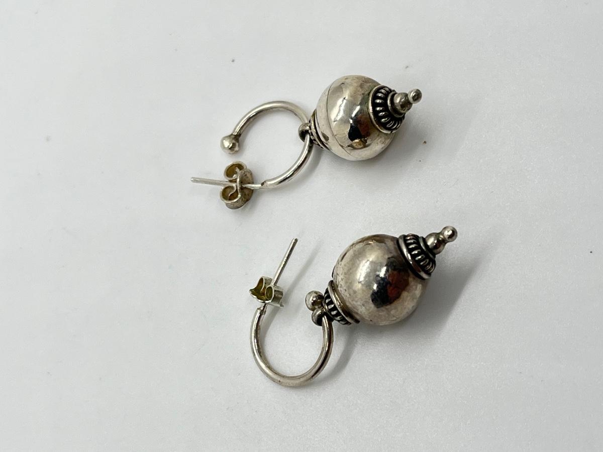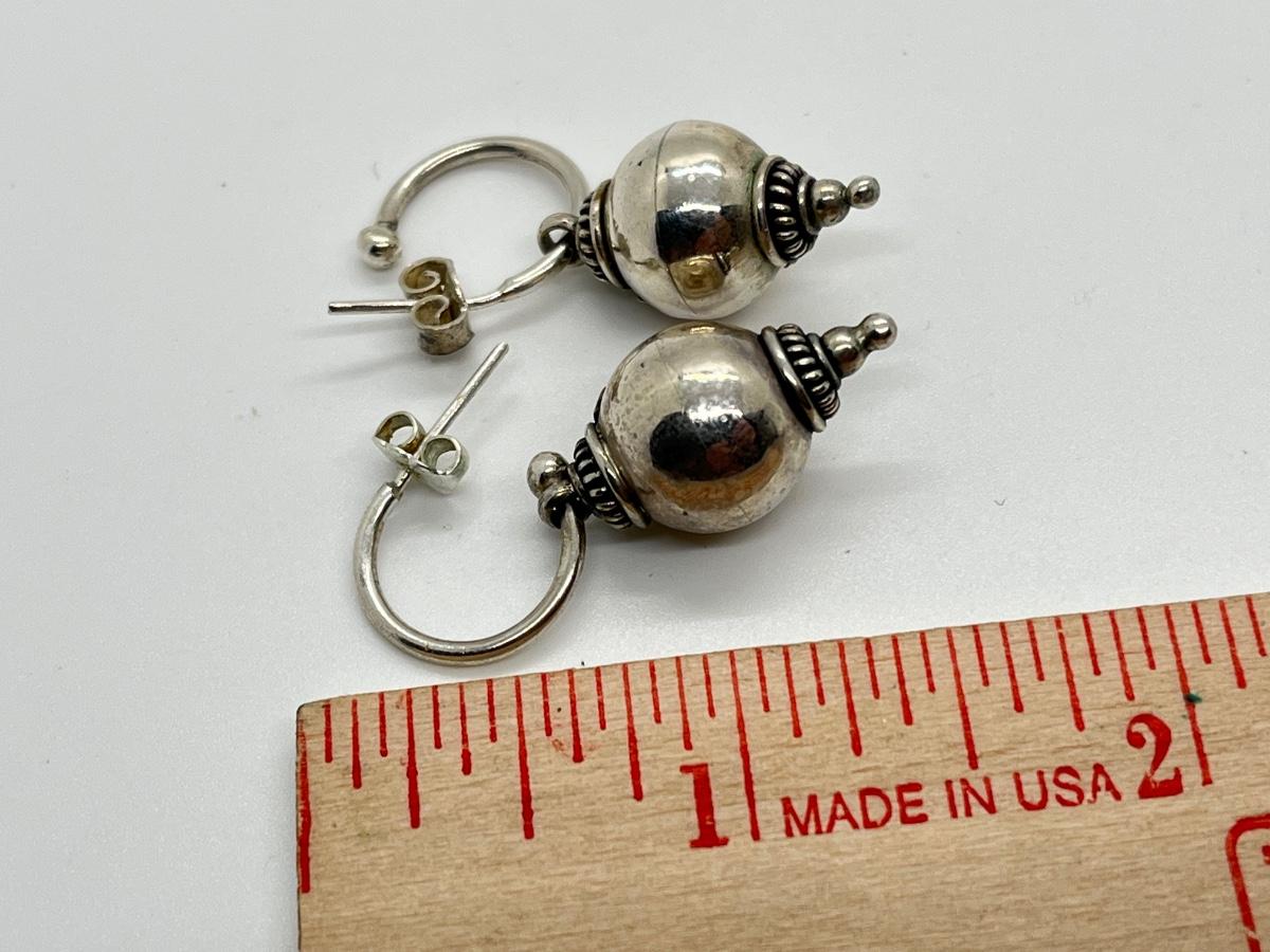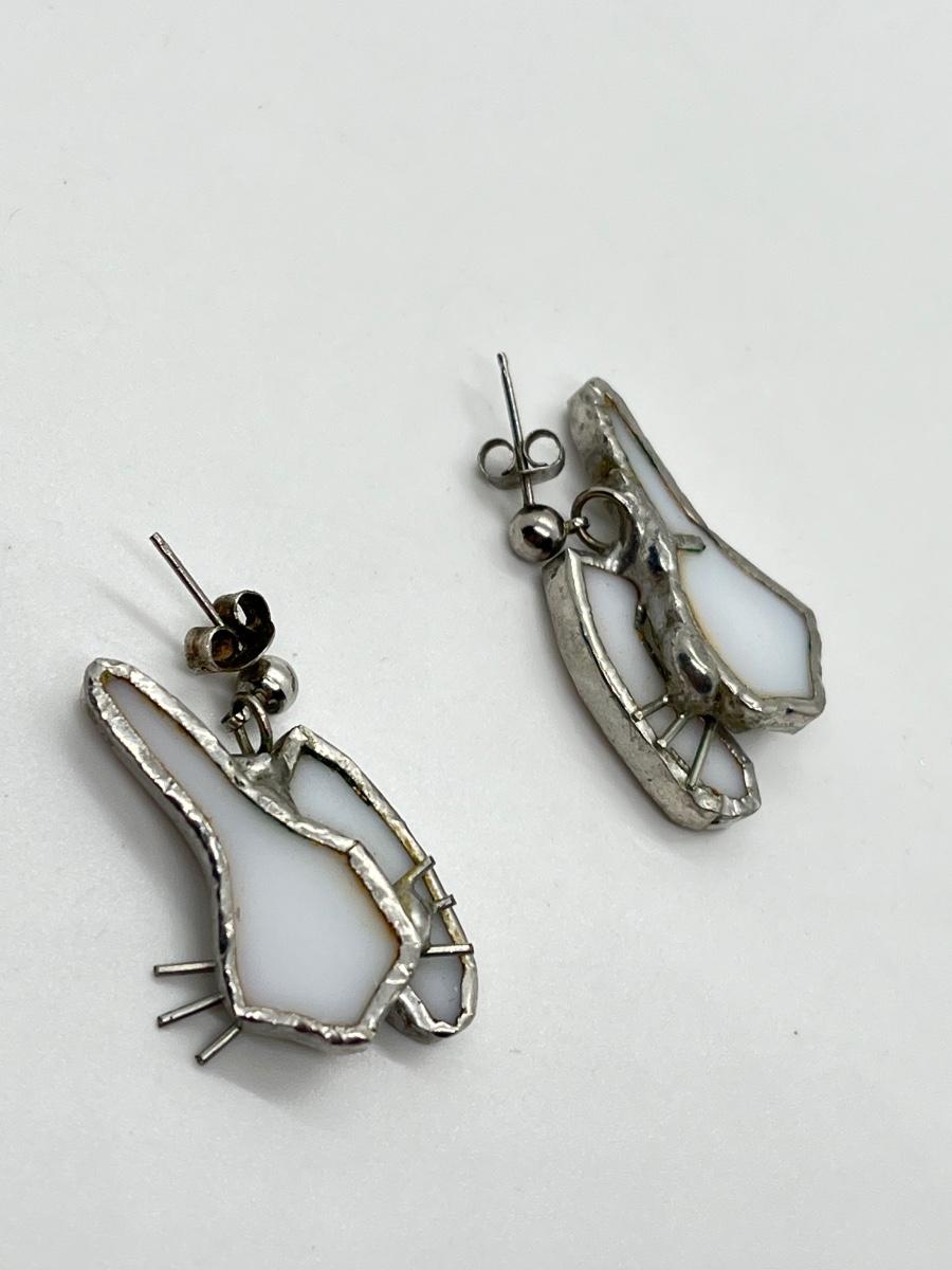 LOT 50: Sterling Silver Pierced Earrings - Stained Glass Bunny Rabbits & Hoops with Removable Ball Danglers