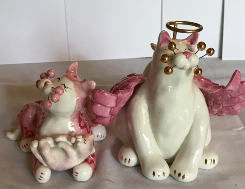All items are signed Amy Lacombe. Angel Cat #86076. Mama Cat #86142. Cherry Cat #87001. Flower Cat #87005