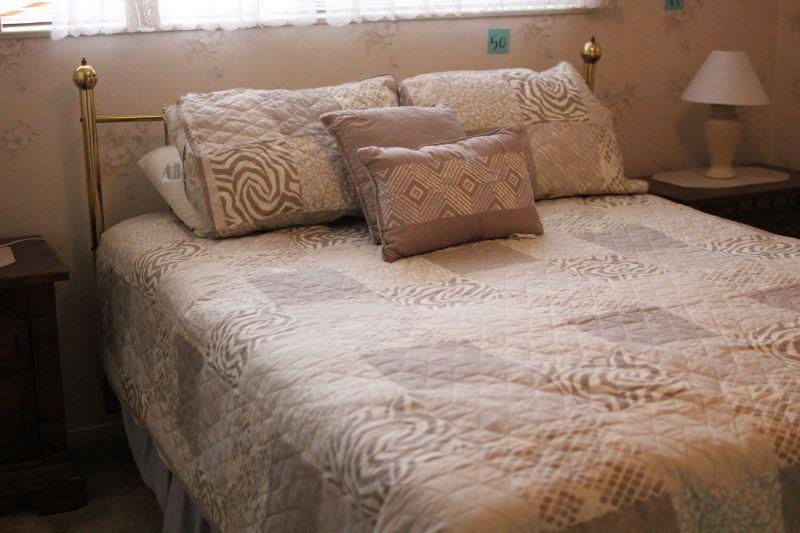 Lot 50 Brass Queen Bed w/ BackCare by Simmons Mattress & Linens