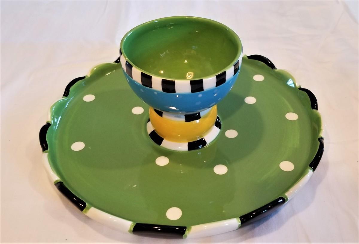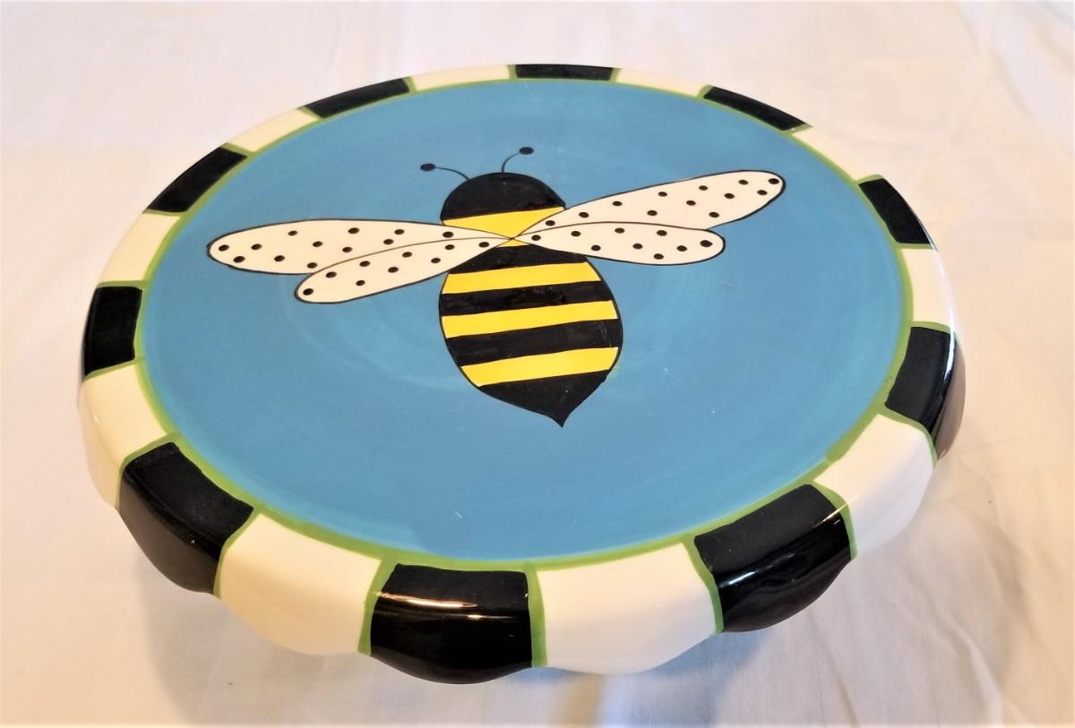 Lot #50  Bumble bee Ceramic Pedestal cake plate - chip/dip combo - Reversible
