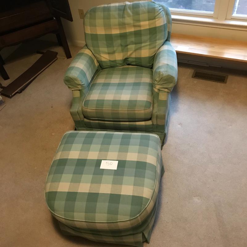 Lot 50 - Checkered Chair and Ottoman