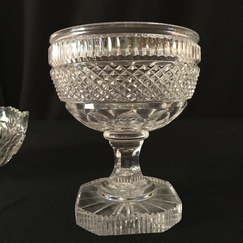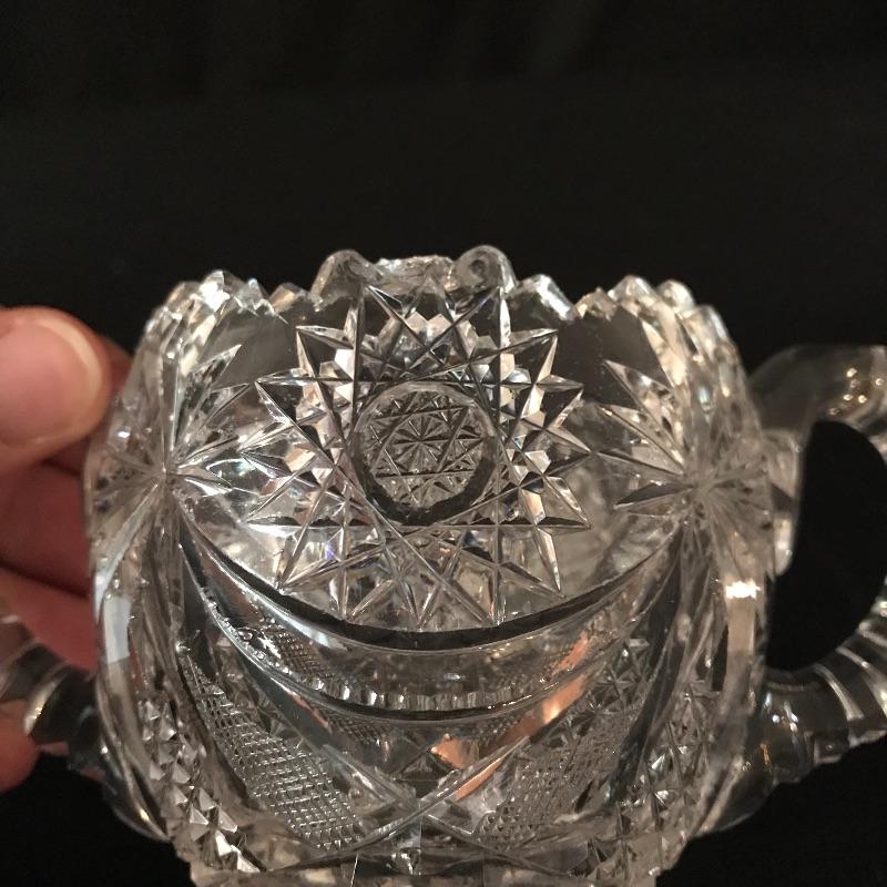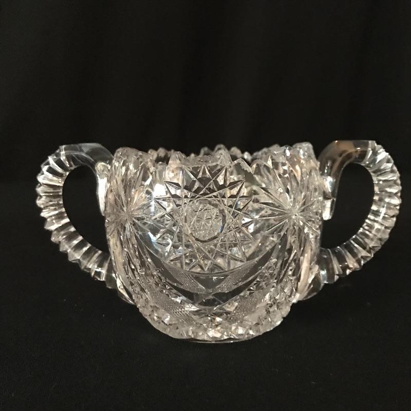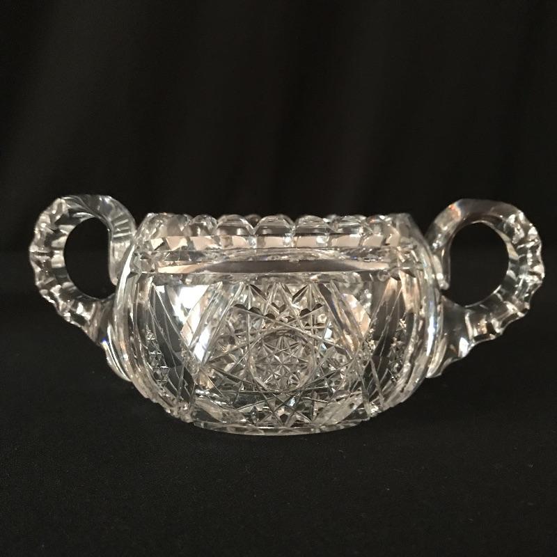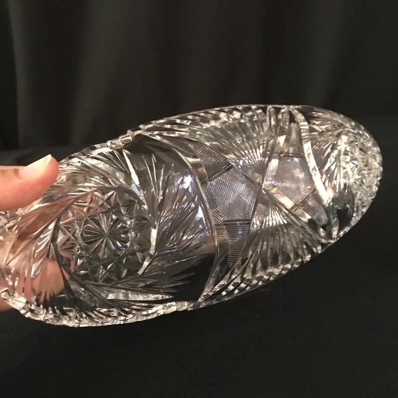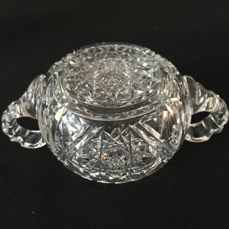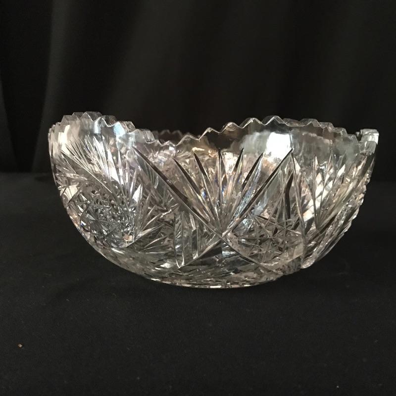 Large collection of sparkling glass. All glass pieces appear to be cut glass. From serving dishes to decor and even an ashtray can be found here. Two mustard bowls with ornate details, the smaller one having some chips in the rim. Also chips found in rims of the two round non-footed bowls. The footed serving bowl measures approximately 5.75”d x 7.25”. See photos. Shipping available.