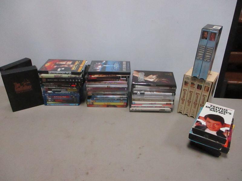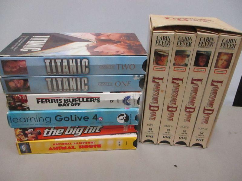 Titanic, Lonesome Dove, Ferris Bueller's Day Off VHS tapes. The God Father DVD Collection and more