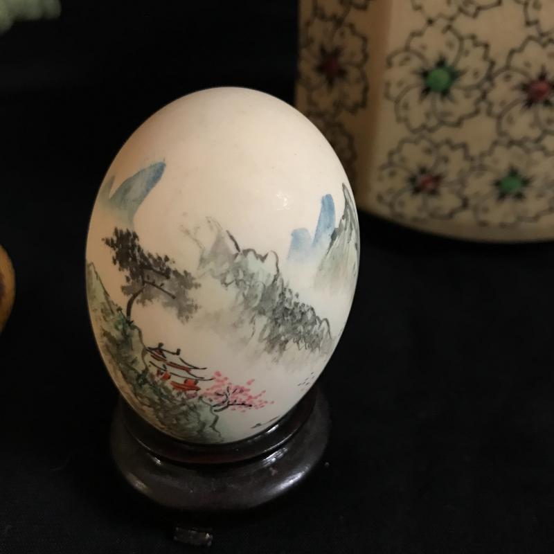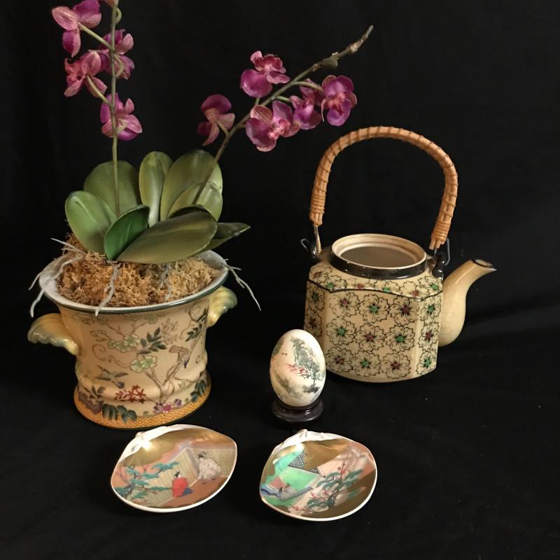 Kai-Awase shells with gorgeous hand-painted inside. See photo for detailed description. Lot also includes amazing artwork on hollow egg. Tiny details on this hand-painted piece. Tea pot and faux orchid round out the lot. Orchid pot is 6”d x 4.5”h Shipping available or local pick up.
