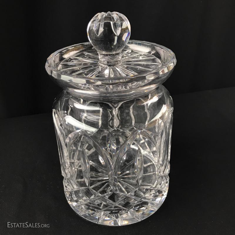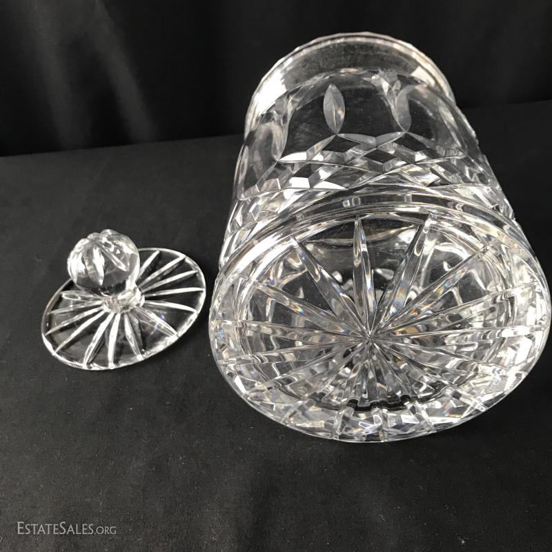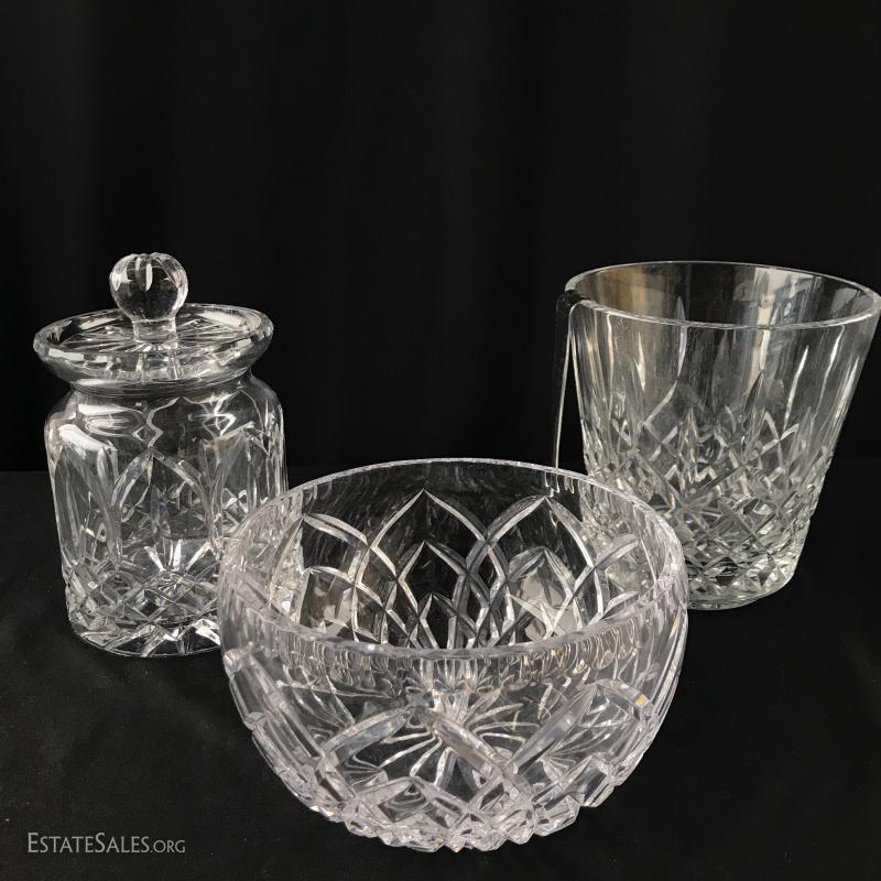 Gorgeous crystal canister with lid (5.5” diameter x 9.5” tall), ice bucket and tongs (7”diameter x 7.5” tall) and bowl (8.5”diameter x 5”tall). Nice heavy pieces for your collection. Bowl has small chip on inside top. See pictures. Shipping available or local pick up in Asheville, NC.