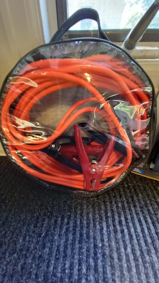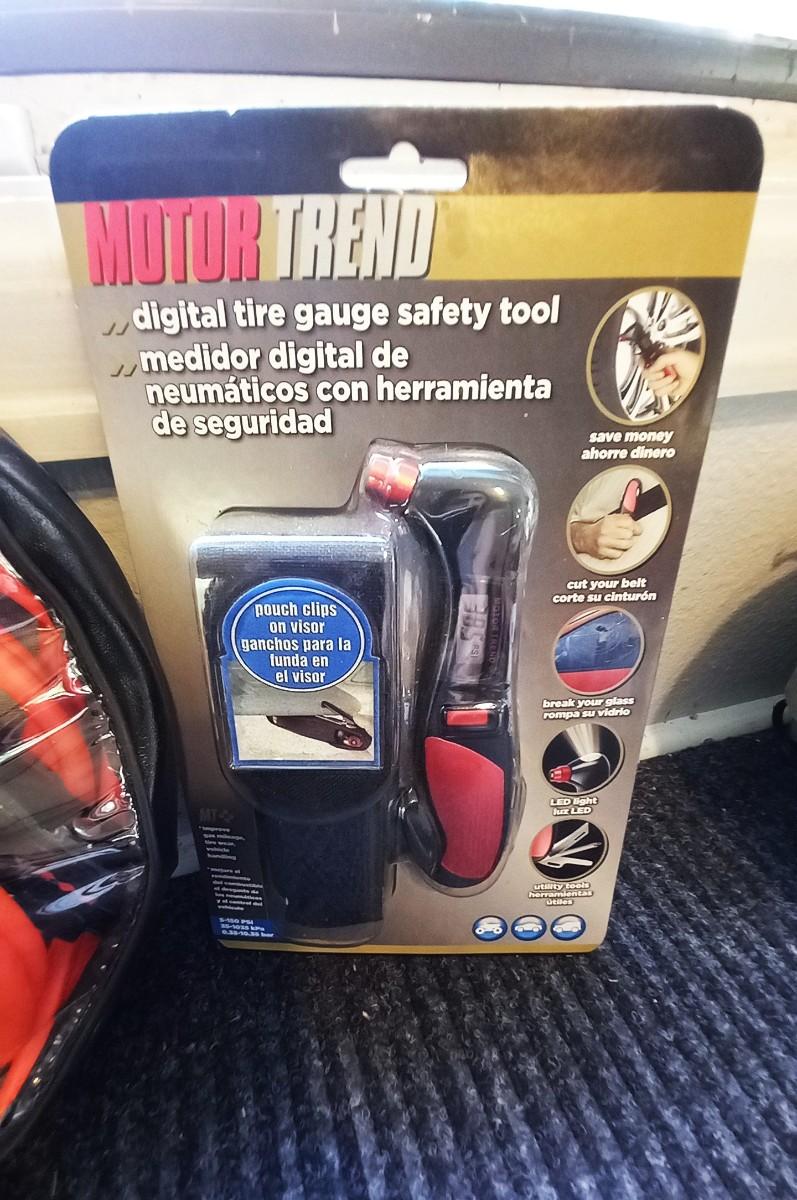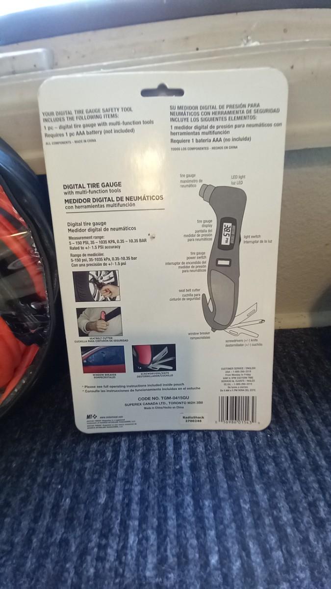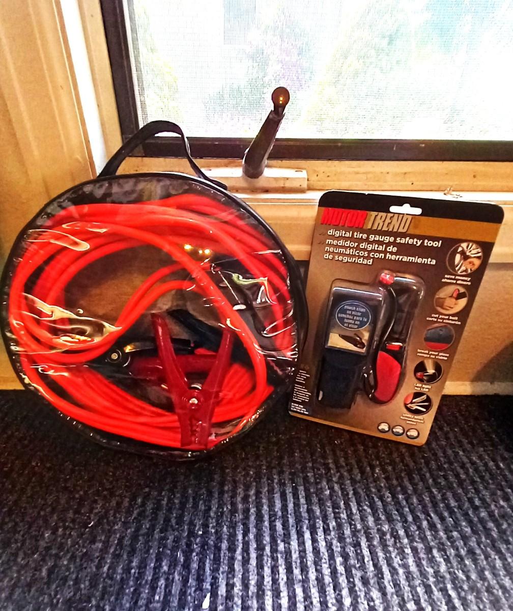 JUMPER CABLES AND NEW DIGITAL TIRE GAUGE SAFETY TOOL