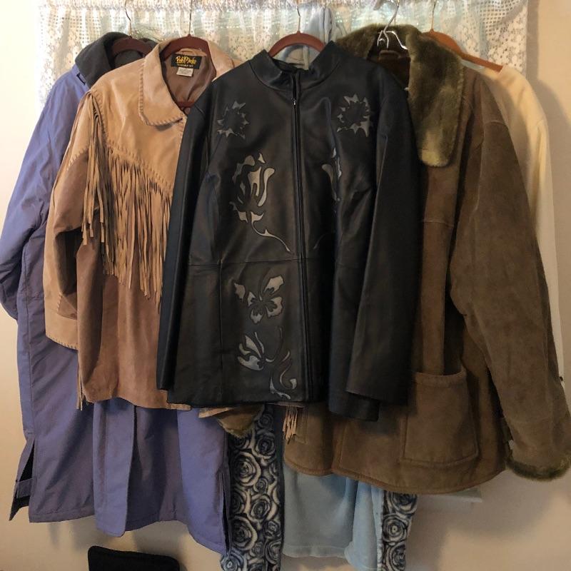 Stay warm in style this winter with this assortment of winter jackets, shirts and more. Sizes are mostly 2X and 3X as shown in images. Items include genuine leather, suede and wool all very attractive pieces. We have even included a bathrobe and you will see from the images that some pieces are brand new and still with tags. Items did come from a smokers home.