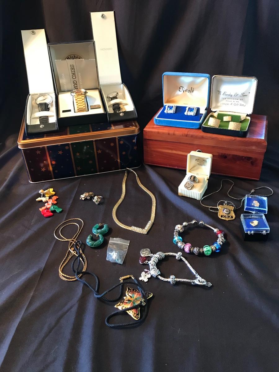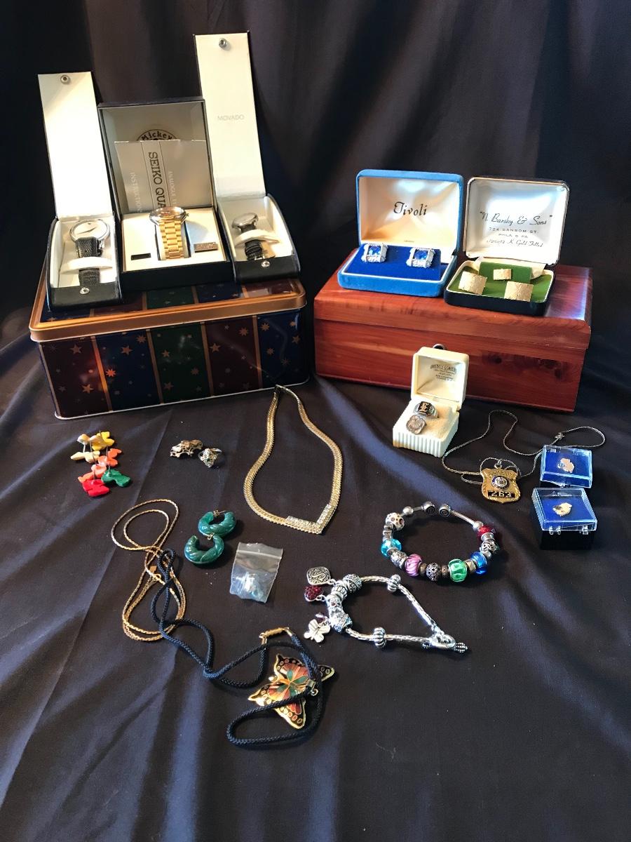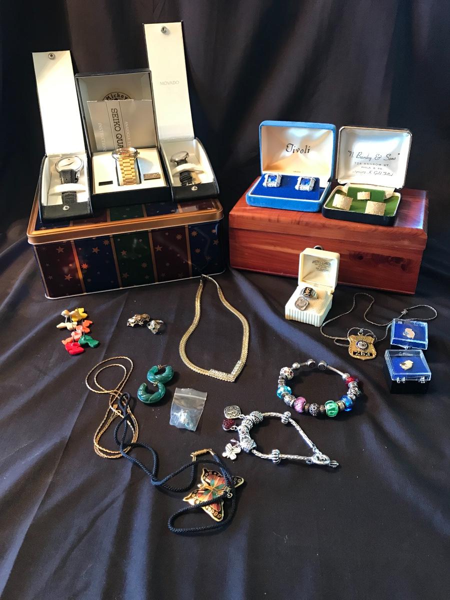 Large Jewelry Lot Movado Watches, Seiko, Cuff Links & More. Please see all pictures as they are the best representation of the items. The pictures show condition, measurements if taken, and what is included in the lot. Due to the large amount that we photograph and the time frame, we are not always able to take measurements. All items unless noted, are pre-owned and have been used. If you purchased furniture, you must bring help. We do not allow one person to carry large furniture out on their own. Bring help, tools and a truck for the safety of our client’s homes, and your personal safety. Company policy. Thank you.