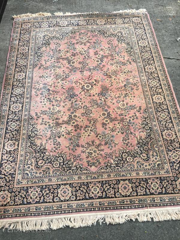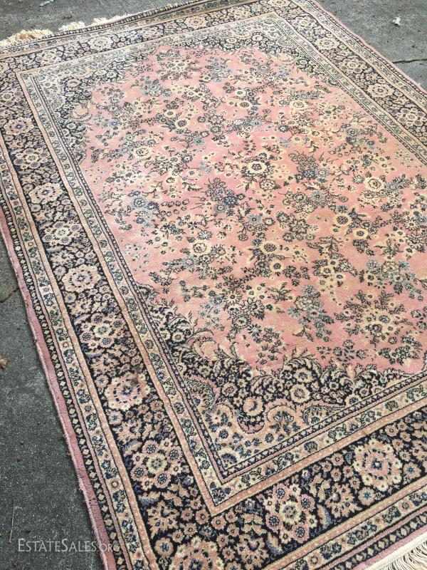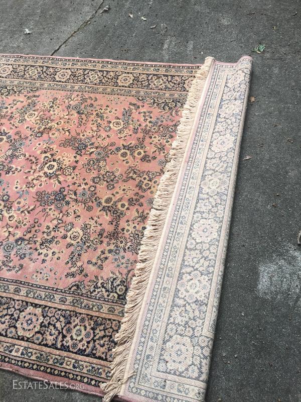 Predominate colors are pink, black, cream, and bluish lavender. There is some fading on one side, likely from sun. In great shape otherwise. Measures 97" x 67". This lot is available for shipping or local pick up in Waynesville, NC.