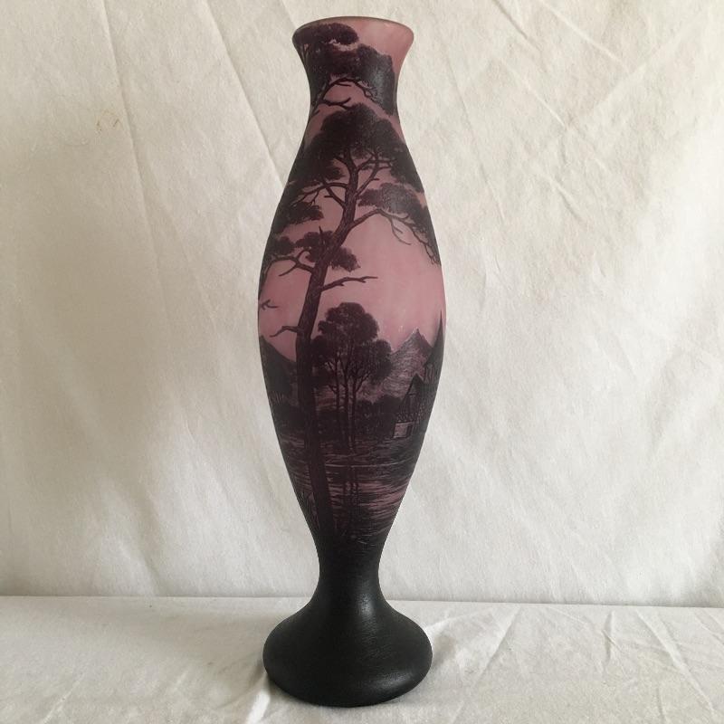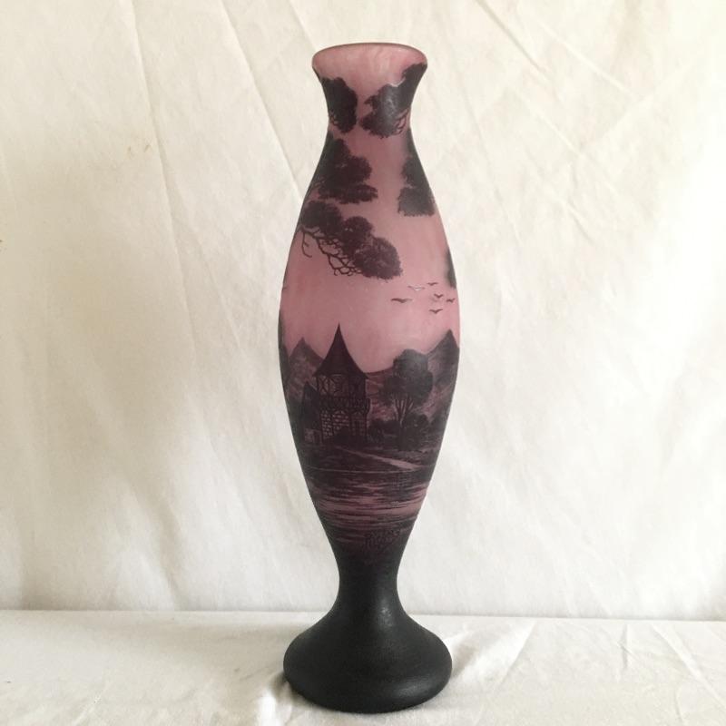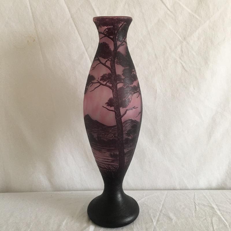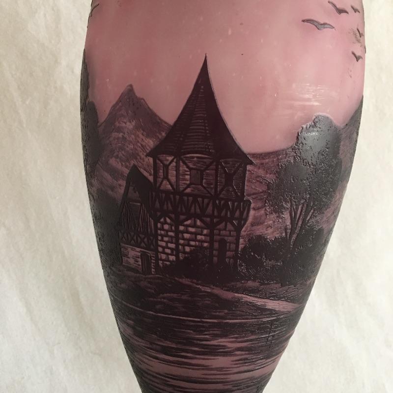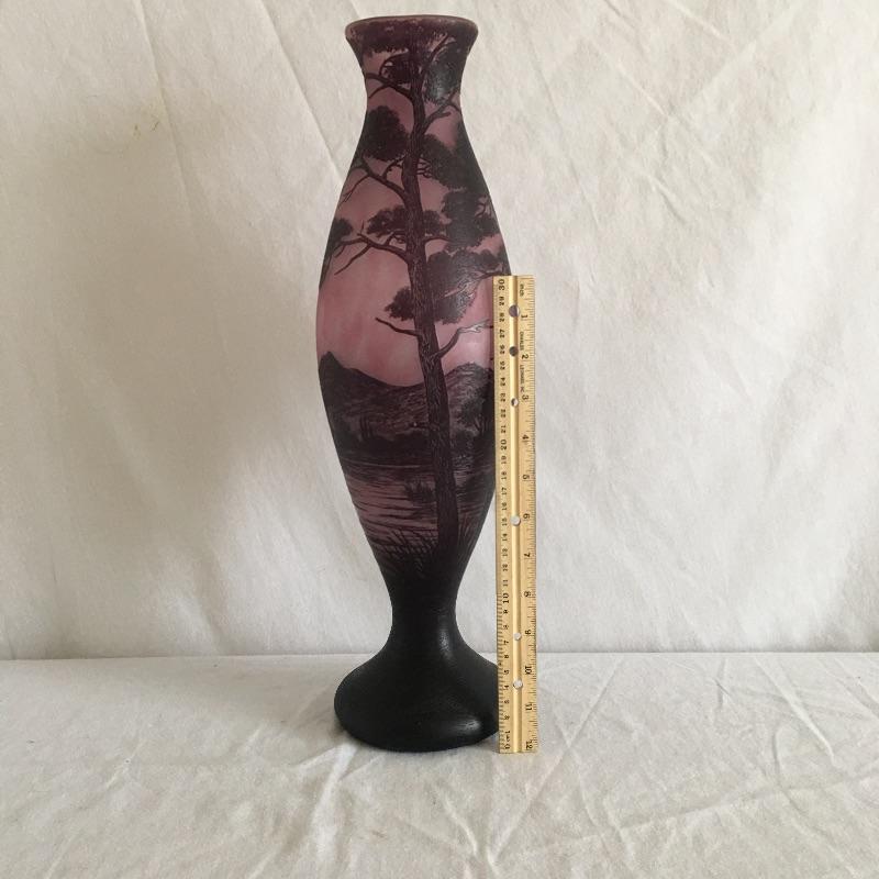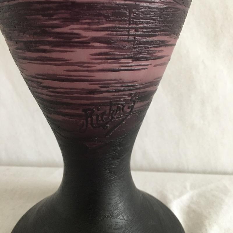 Loetz glassworks tall acid etched Cameo glass vase that is signed Richard. Another beautiful vase with amazing intricate details.