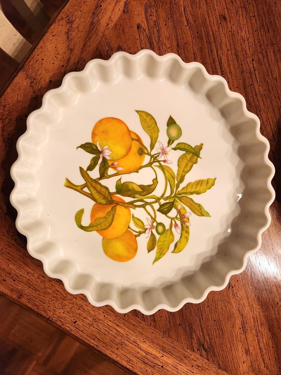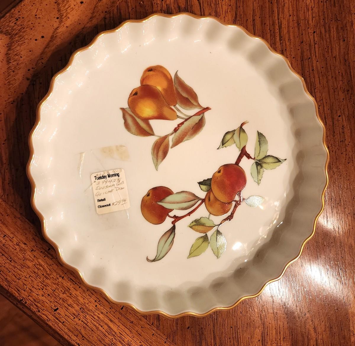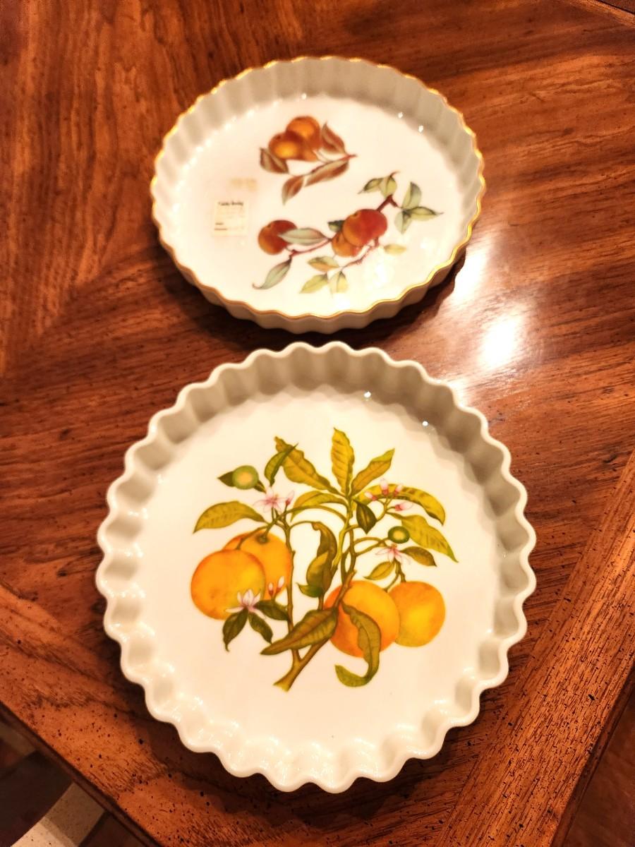 Nice lot of 2 pretty tart/quiche pans - one is Royal Worcester in the "Evesham" pattern - the other marked "France." Each 10.25" across. Great condition.