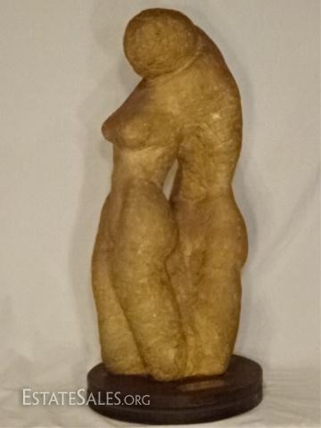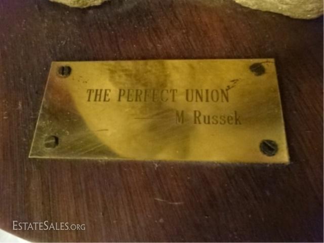 , ON REVOLVING WOOD BASE, LABELED M. RUSSEK AND TITLED "THE PERFECT UNION", VERY GOOD CONDIITON, 26"H X 12"W, SKU390