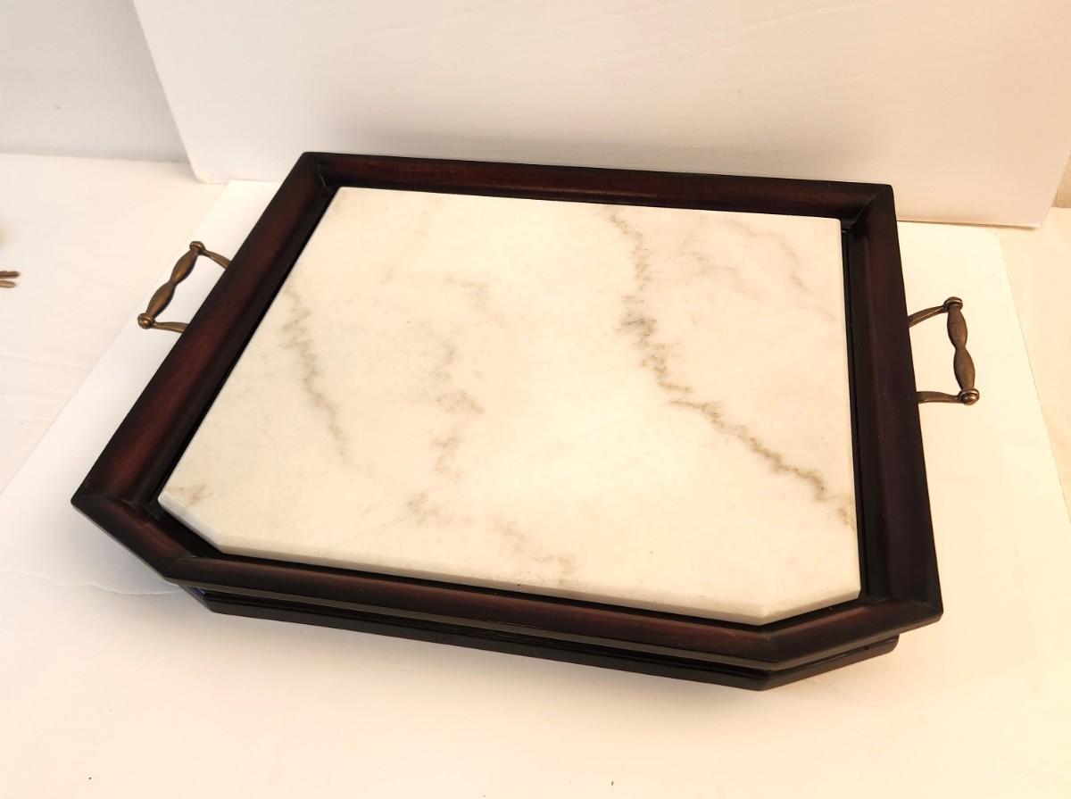 Lot #50 Mahogany Finish Tray with Marble Insert