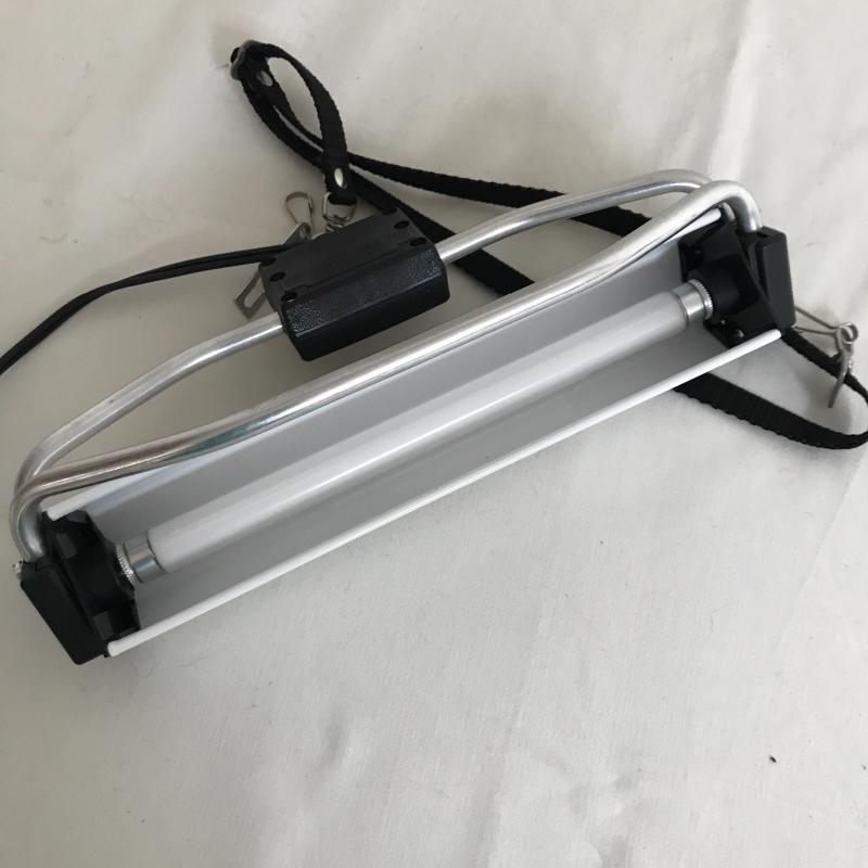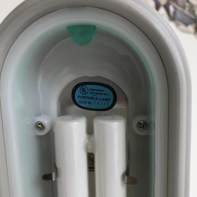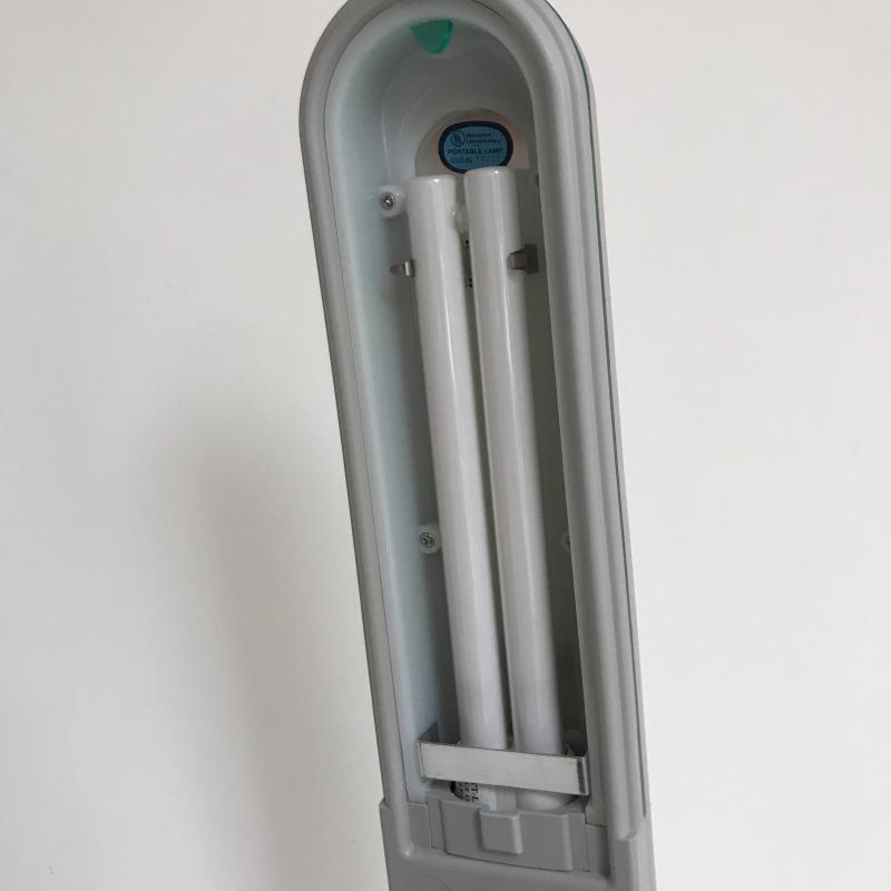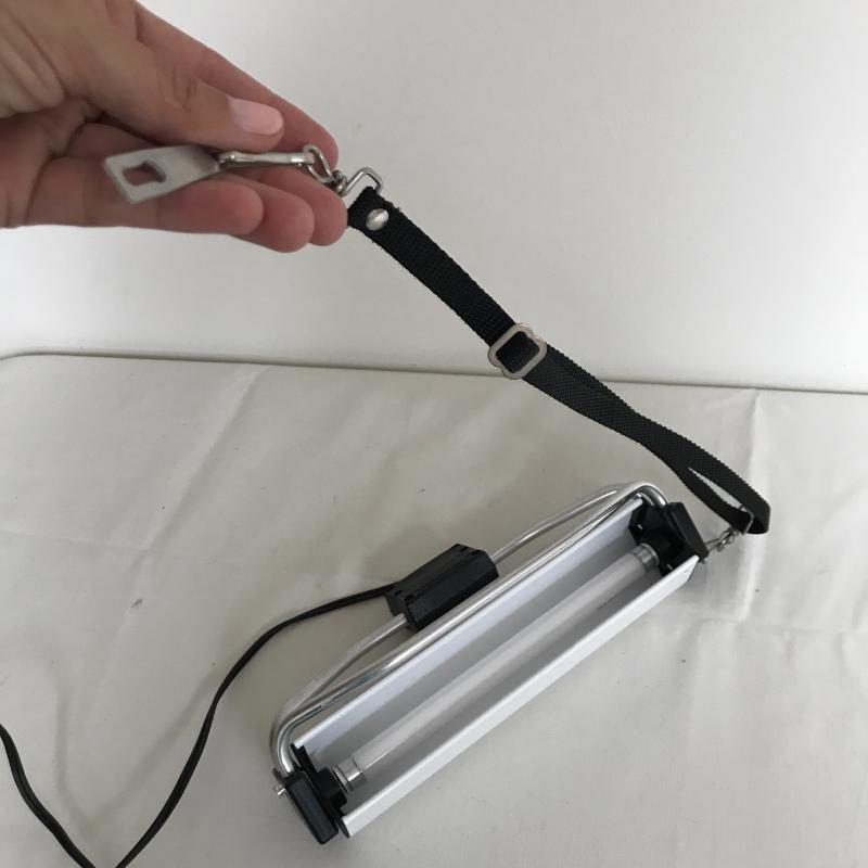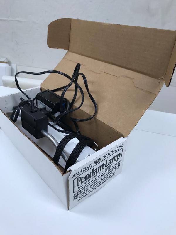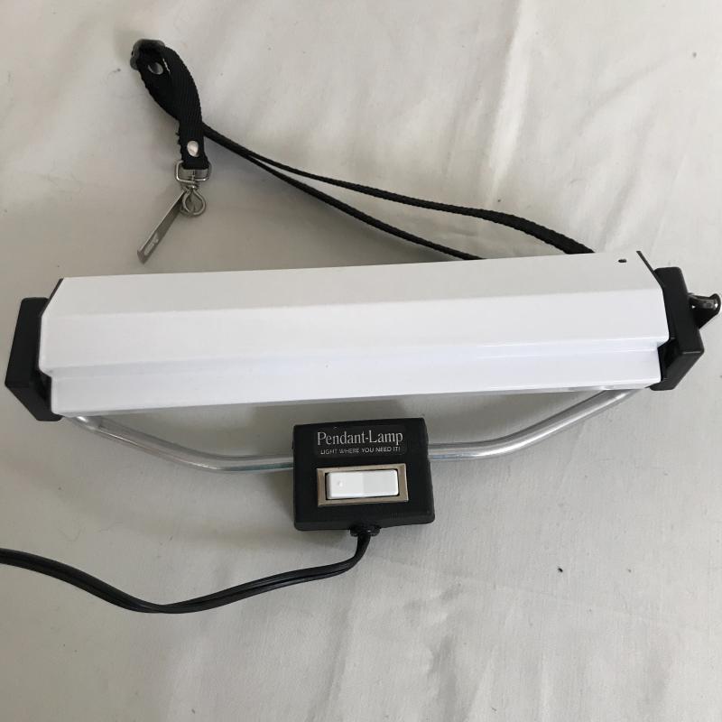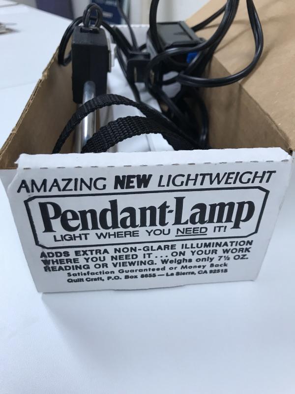 Table top, flexible, portable TrueColor Ott-Lite for sewing or crafting. These are the best lights out there! This one works fine and measures 11” x 8” base and 41” tall when fully extended. It has a couple of splits at flexible points but does not seem to affect functionality. Lot also includes a Pendant Light with Box to add light where you need it. See pix. No shipping.