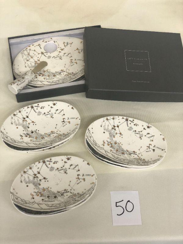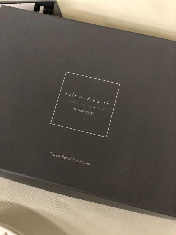 Lot 50 Salt & Earth by Magenta Cheese Board/Knife Gift Set + 6 Snack Plates