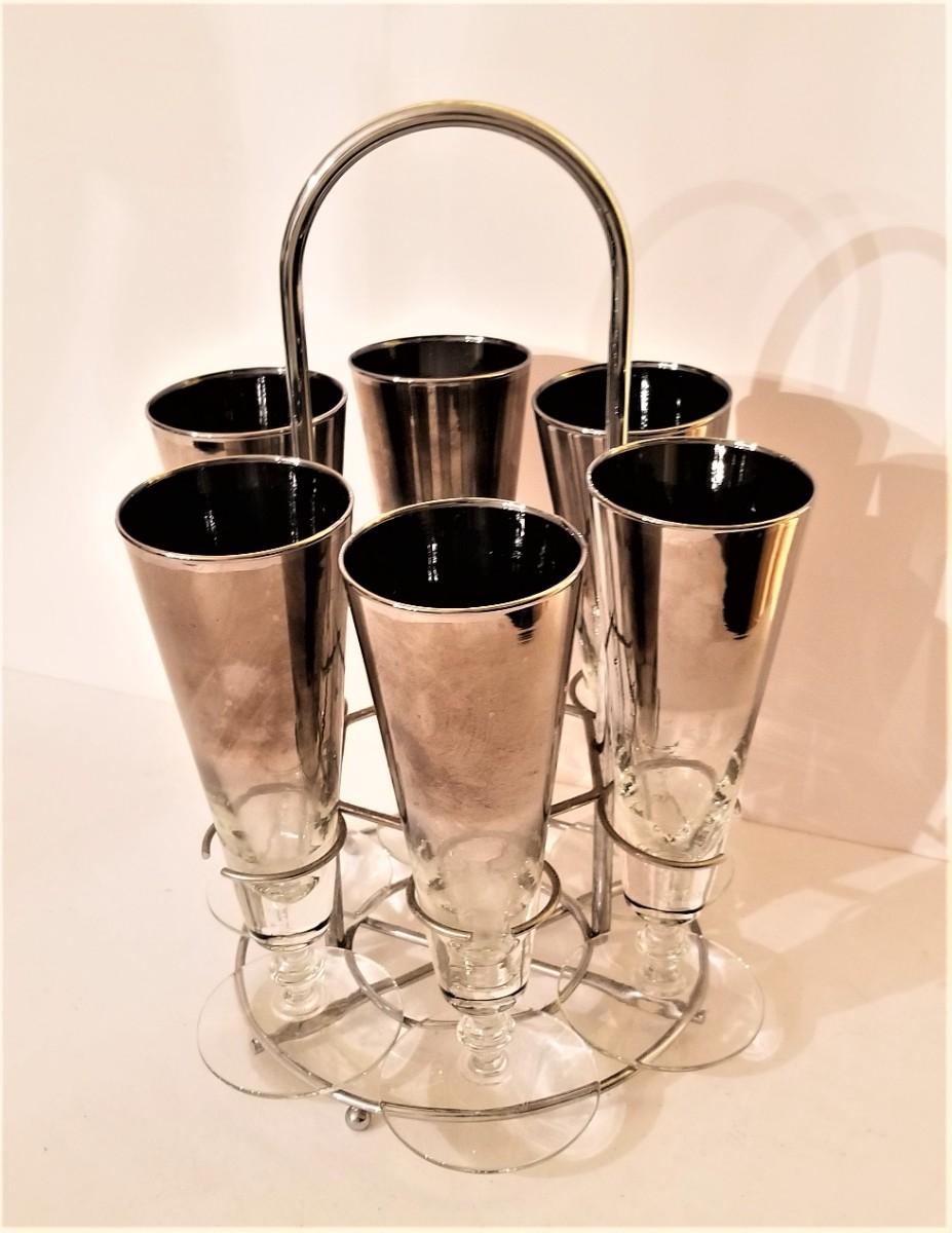 Lot #50  Set of Mid Century Pilsner Glasses on original Stand