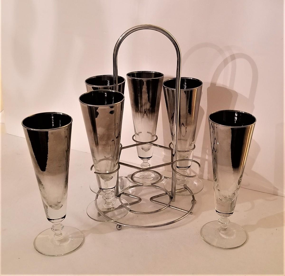Lot #50 Set of Mid Century Pilsner Glasses on original Stand