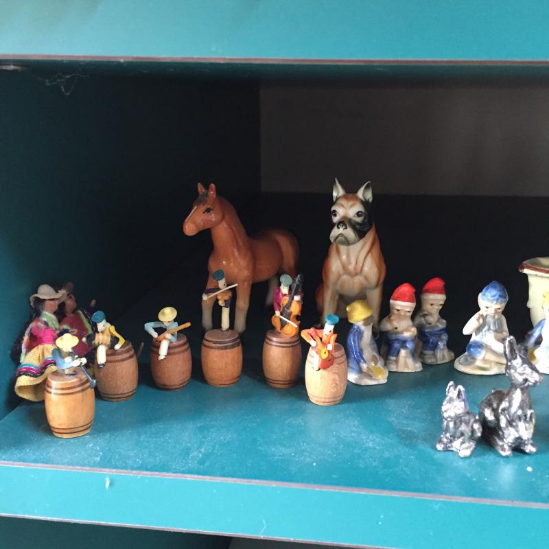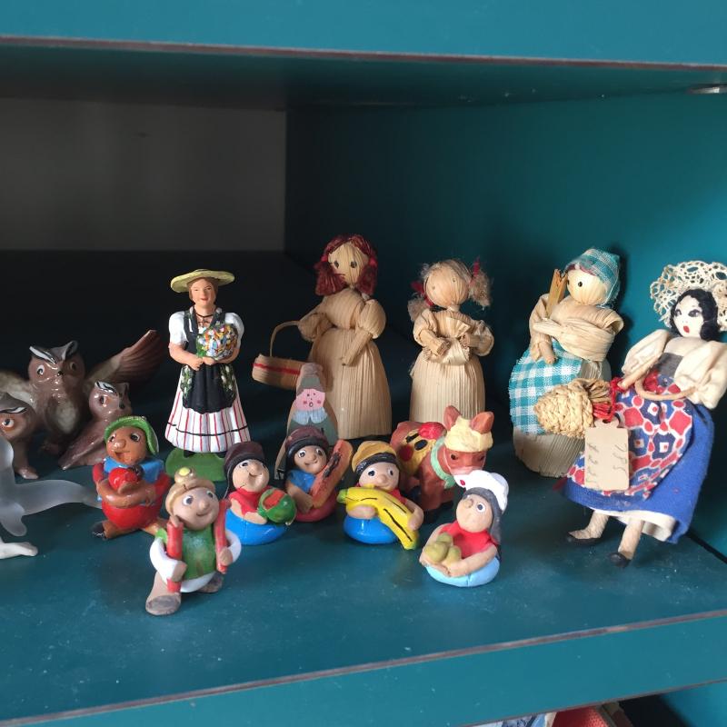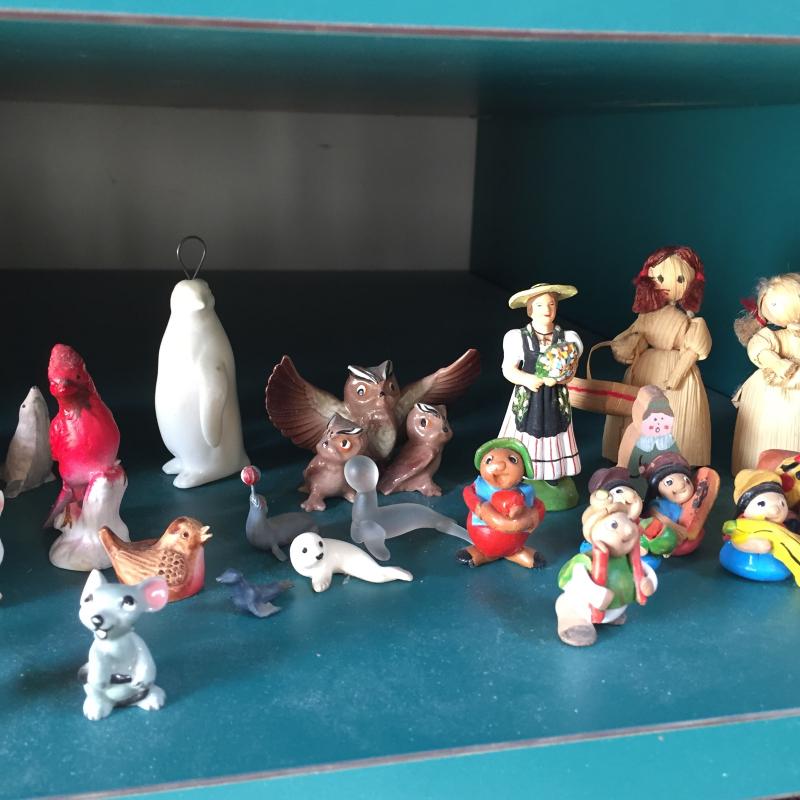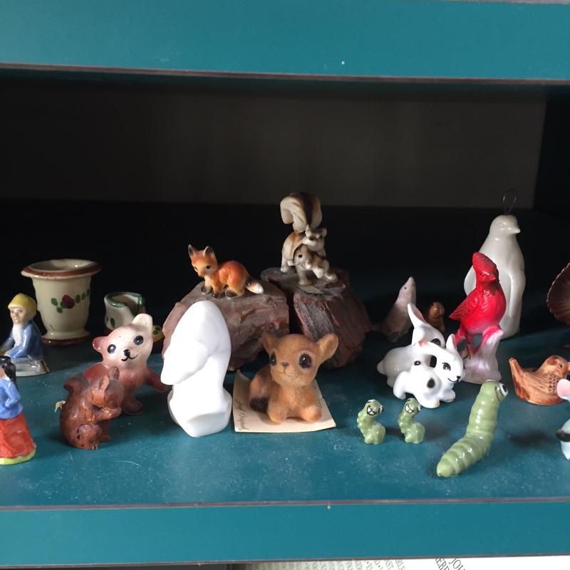 Pair of Shadow boxes and over fifty figurines. Largest Shadow Box Measures 16.75” x 13.75” x 1.75”. The figurines are very eclectic with some small animals and some folk art type. Lots of different sizes. For relative height, the Penguin figurine measures 2.75” Shipping Available.