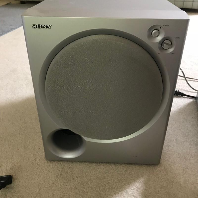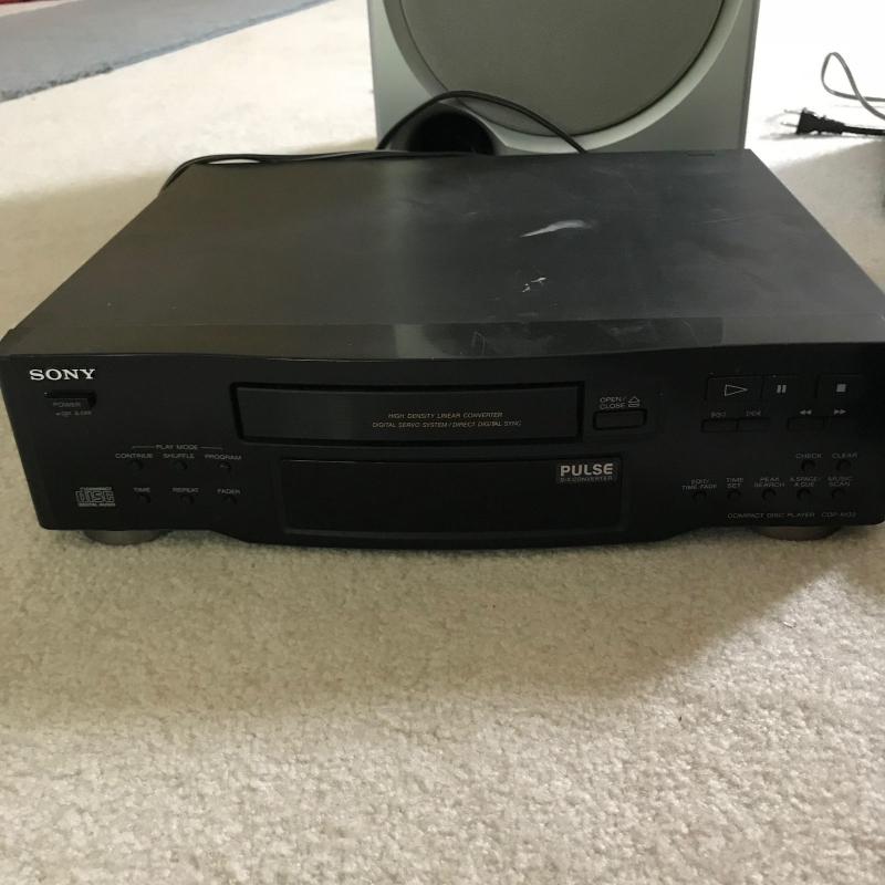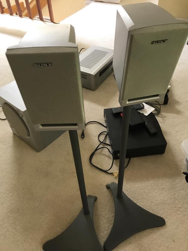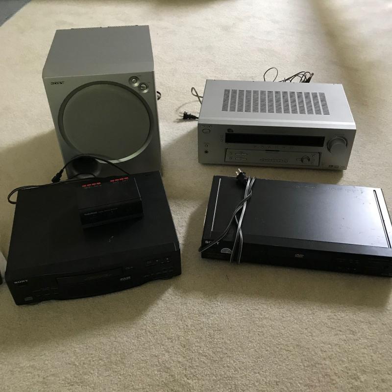 Nice Sony Media System includes a Sony DVD player, DVP-S360, Sony CD player CDP-M33, Sony FM/AM Receiver STR-K850P, Sony Subwoofer / Speaker SA-WMSP85, and Sony Speakers SS_MSP95. Also includes a box of wires and cords that may or may not be used with the system. No shipping.