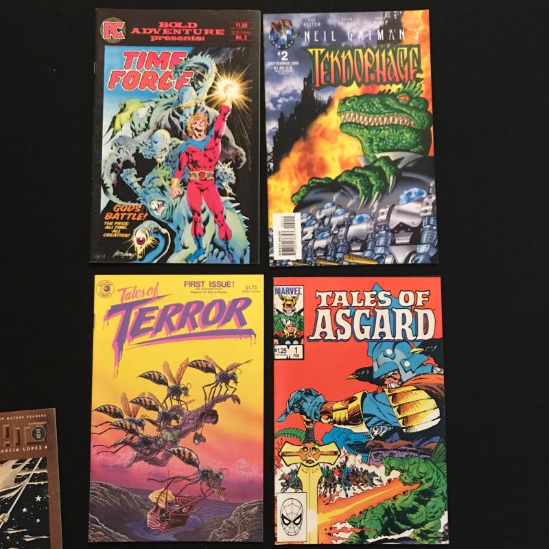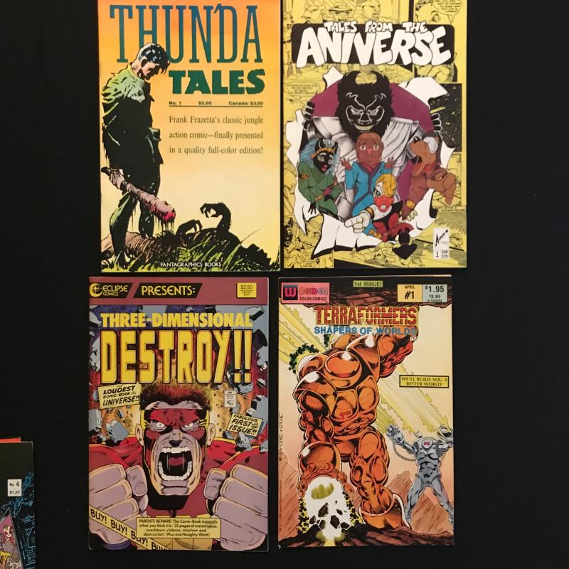 5 issues of "Teenage Mutant Ninja Turtles" by Mirage Studios, 9 Issues of "2000" by Eagle Comics, 2 Issues of "39 Screams," a foreign copy of "Titans" and several single issues beginning with “T.” 28 total issues in the lot. Fits in ONE Priority box or local pick up in Asheville, NC.