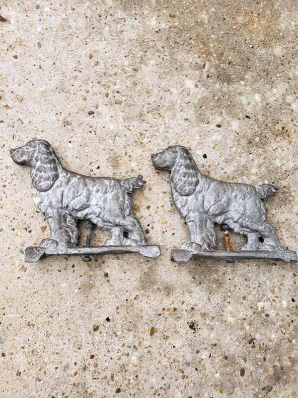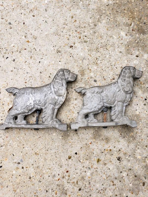 LOT #51. Two cast aluminum gate decorations, Irish setter