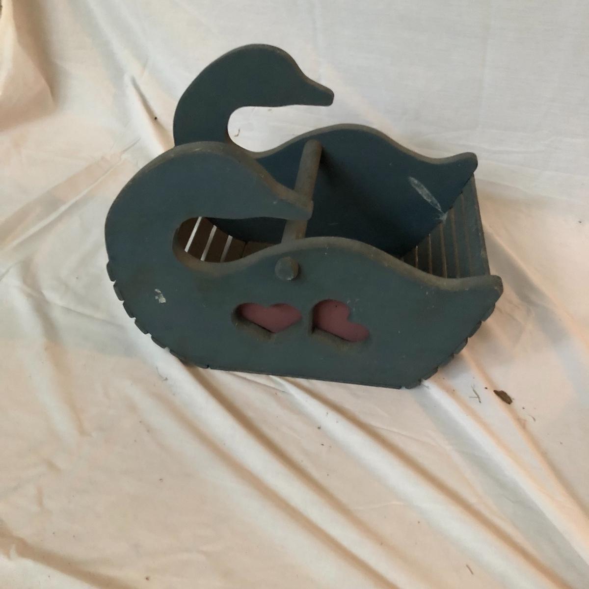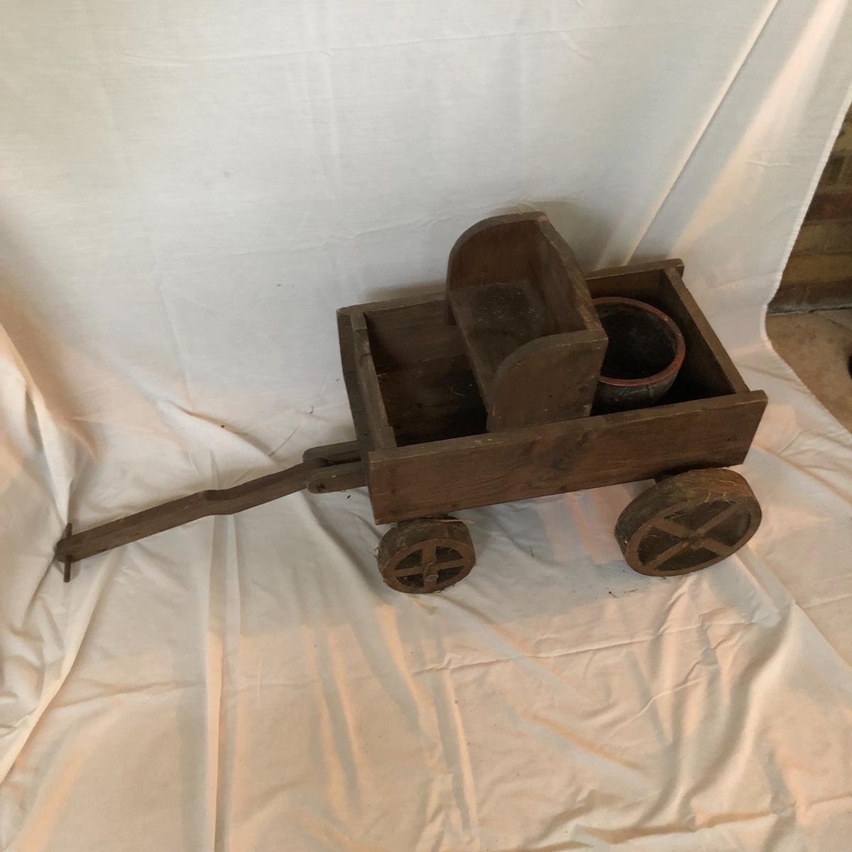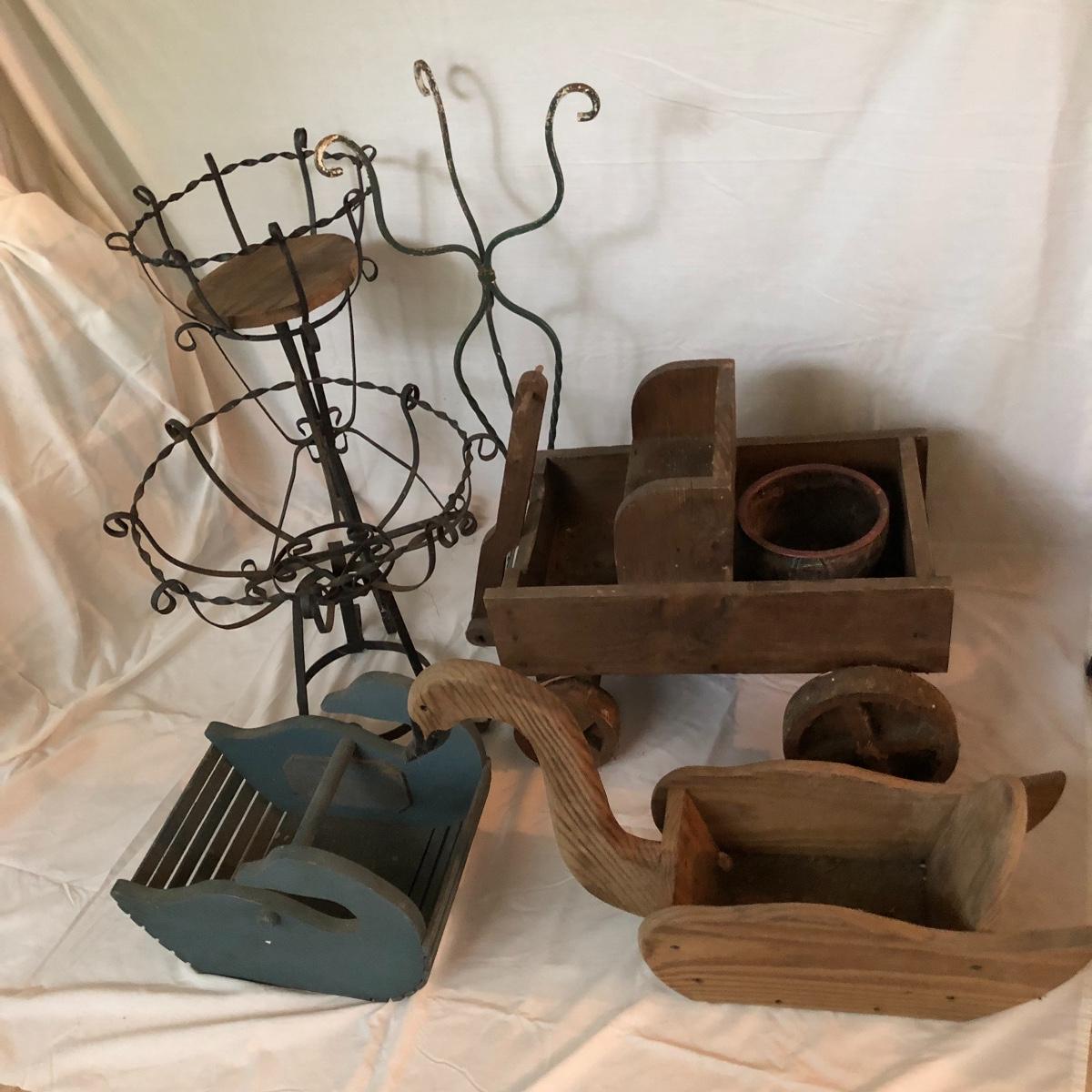 There are 3 metal plant stands and four wooden finds in this great lot. The wooden wagon and two ducks could be used to hold plants or simply left as is for attractive country-style charm indoors or out! The 19.5” x 19” x 15” wooden step stool could also function as a plant stand too. Also included is a small terracotta plant pot.