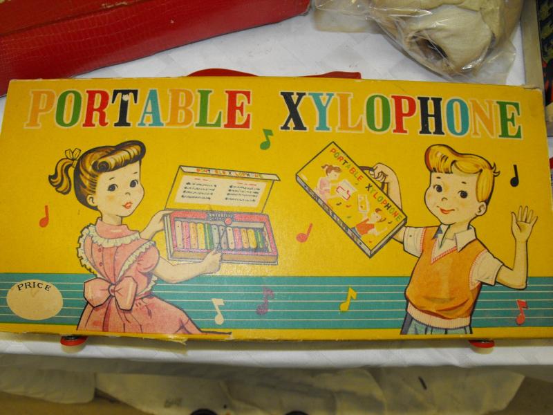 Portable Xylophone and Roulette Wheel, boxes have some wear