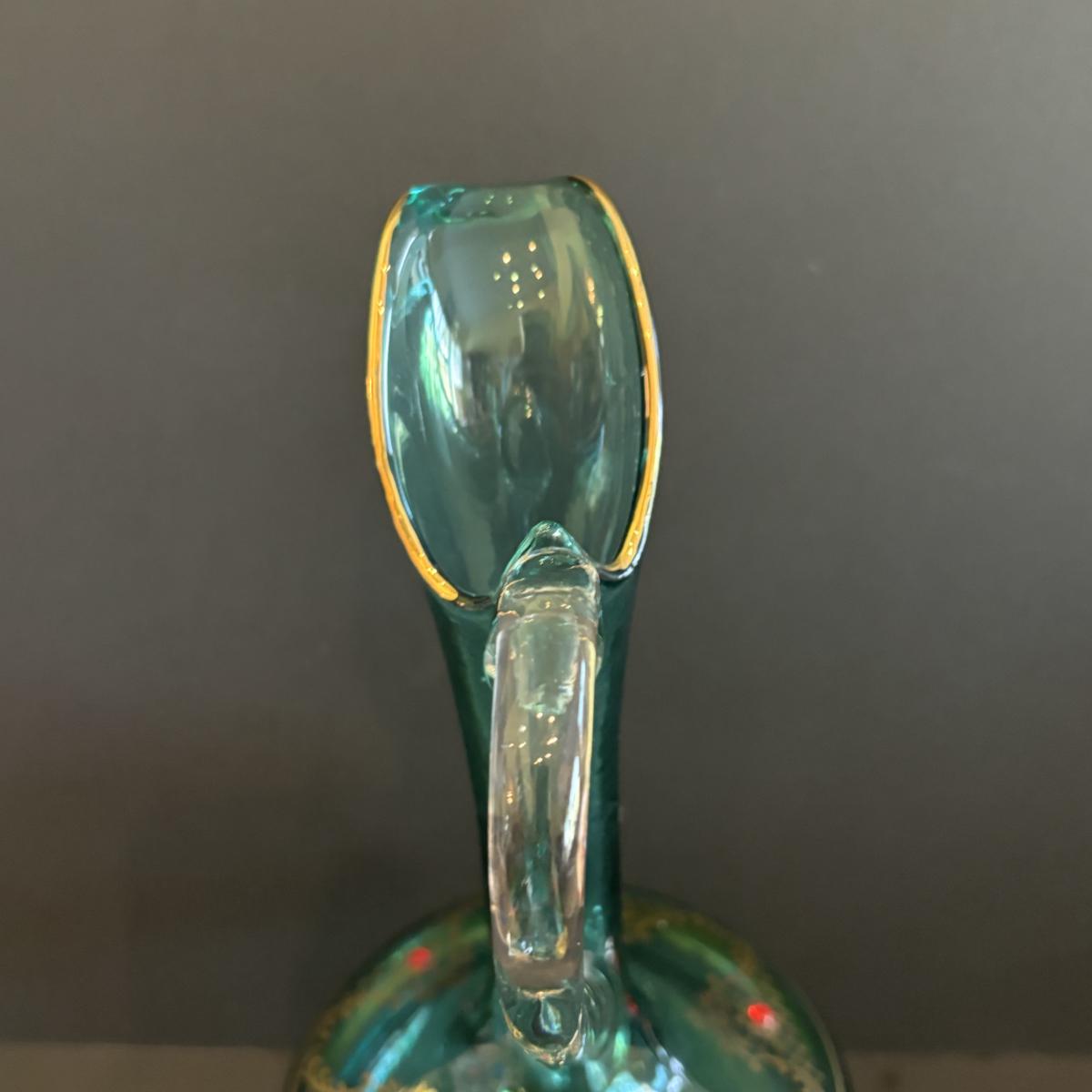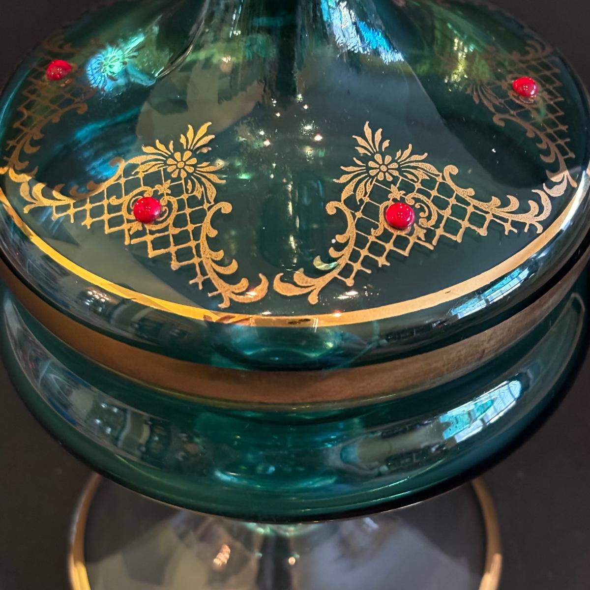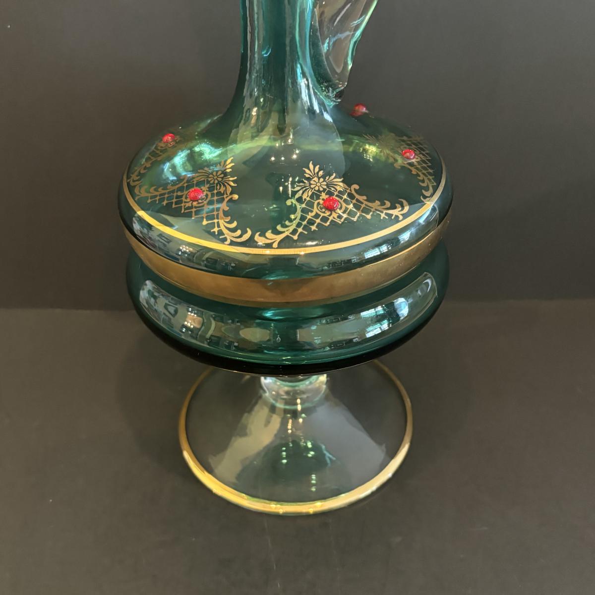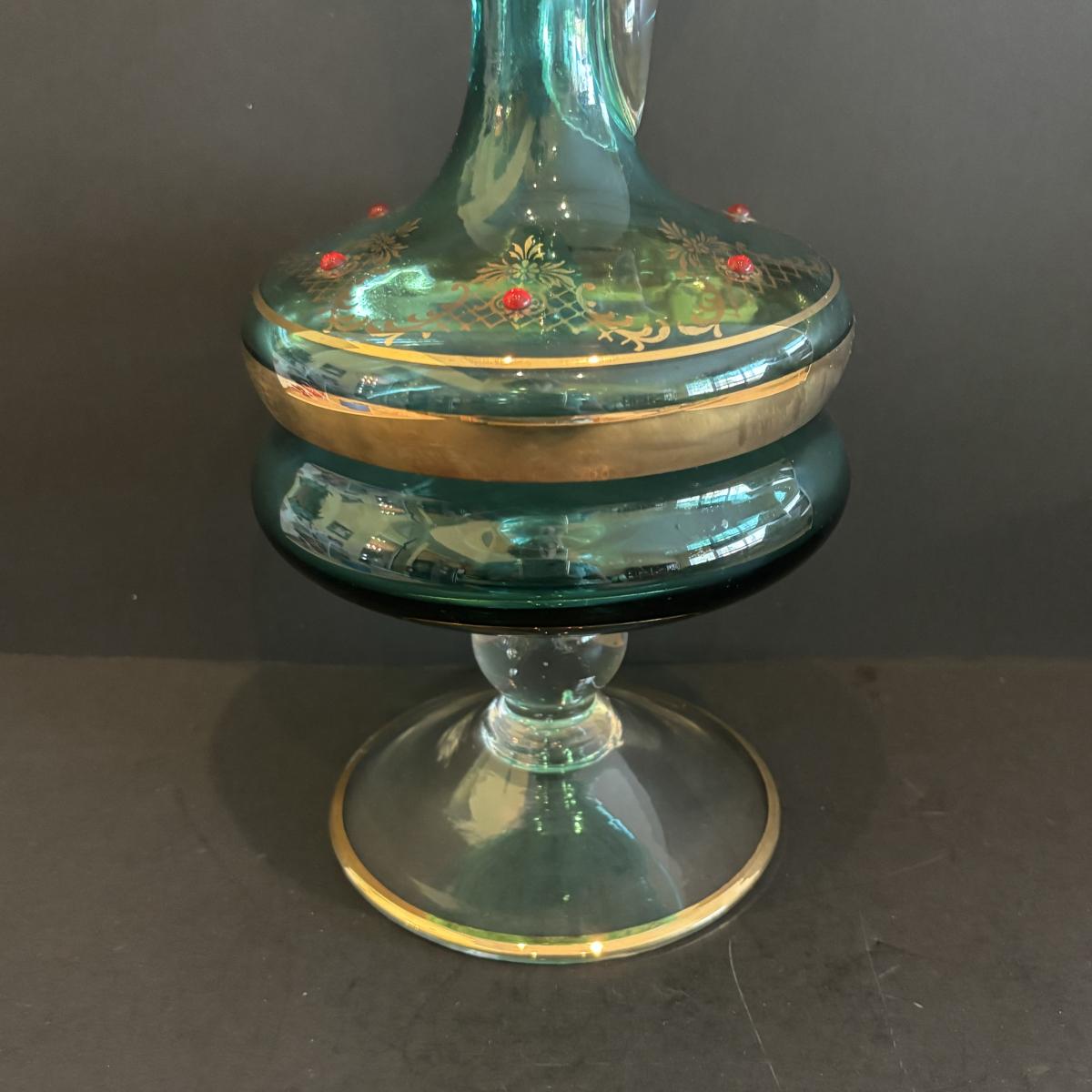 LOT 500: Venetian Blue/Green Red Jeweled Art Glass Hand Painted Gold Liqueur Decanter & More