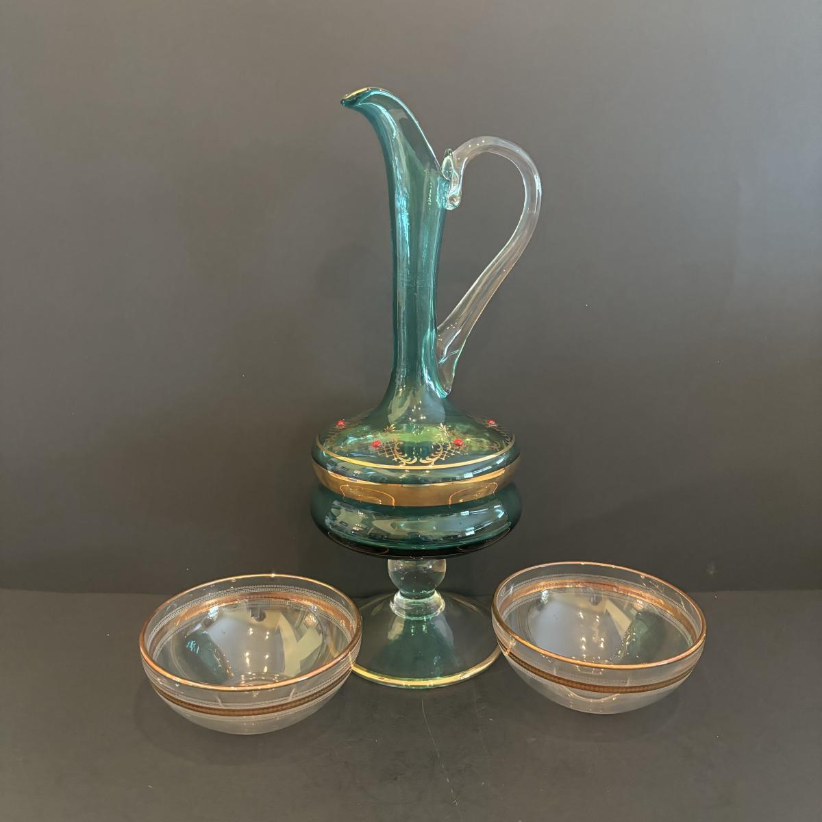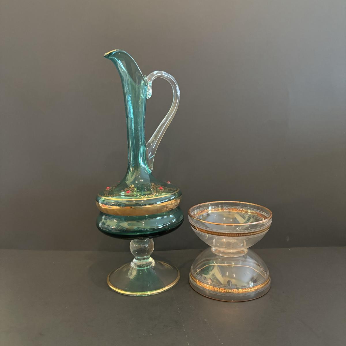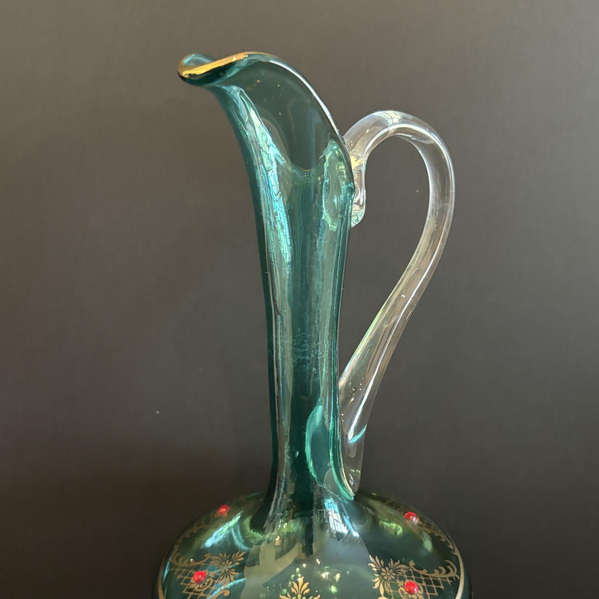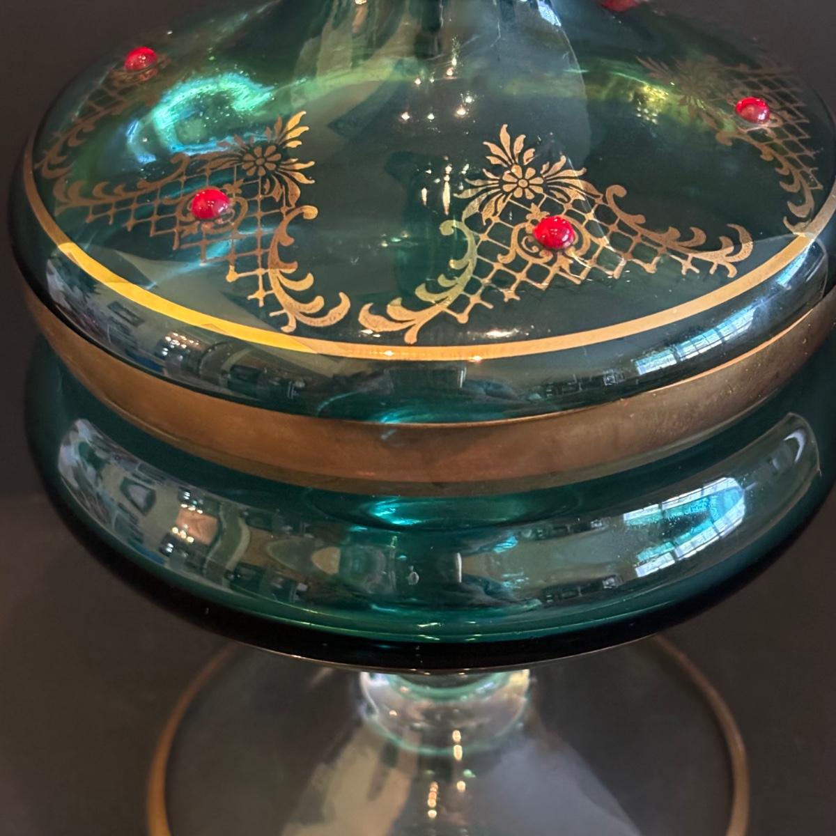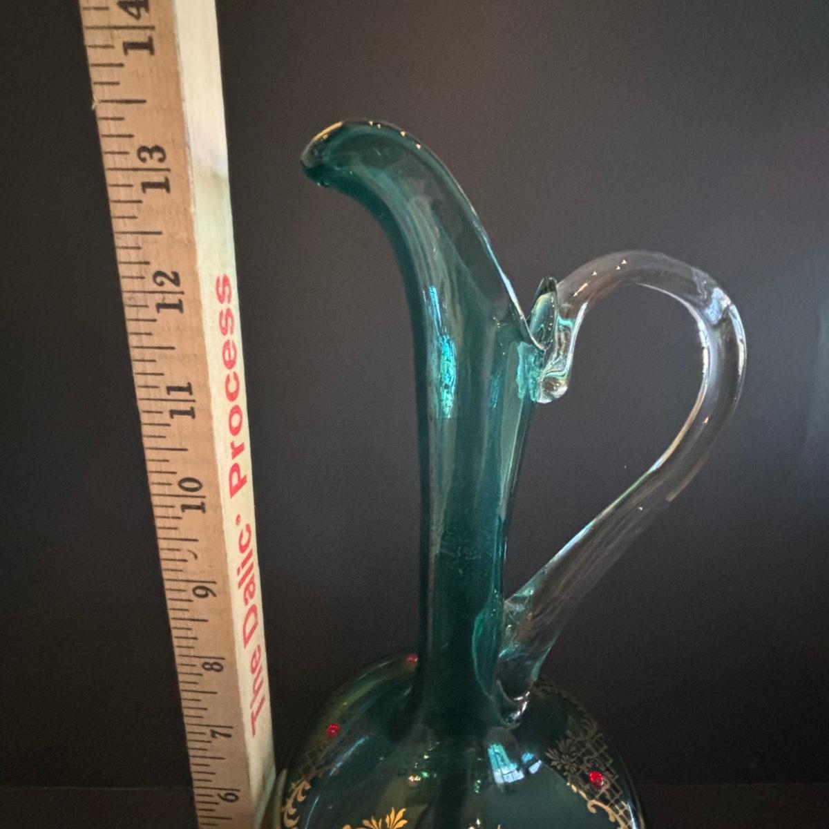 LOT 500: Venetian Blue/Green Red Jeweled Art Glass Hand Painted Gold Liqueur Decanter & More