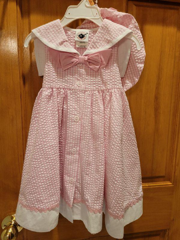 Lot 500: New Pink and White Dress and Hat Size 2T
