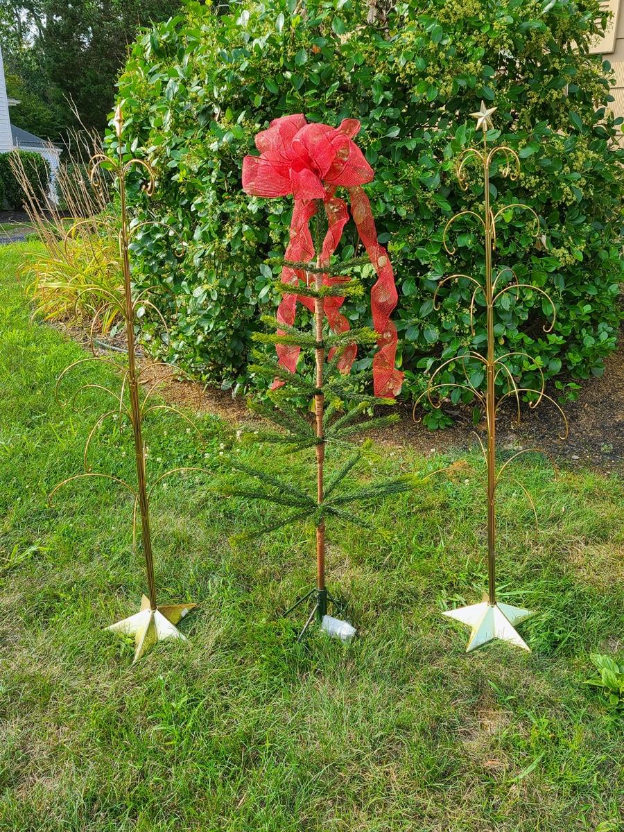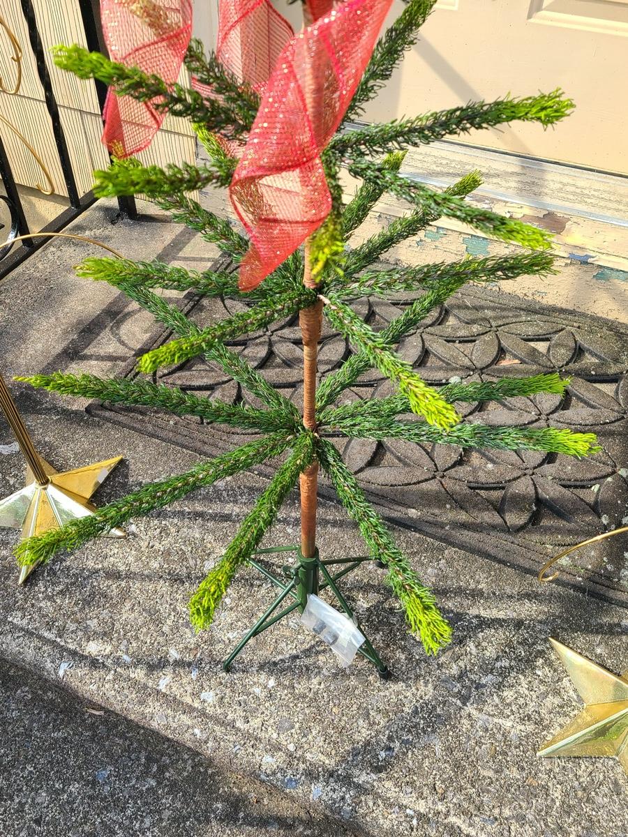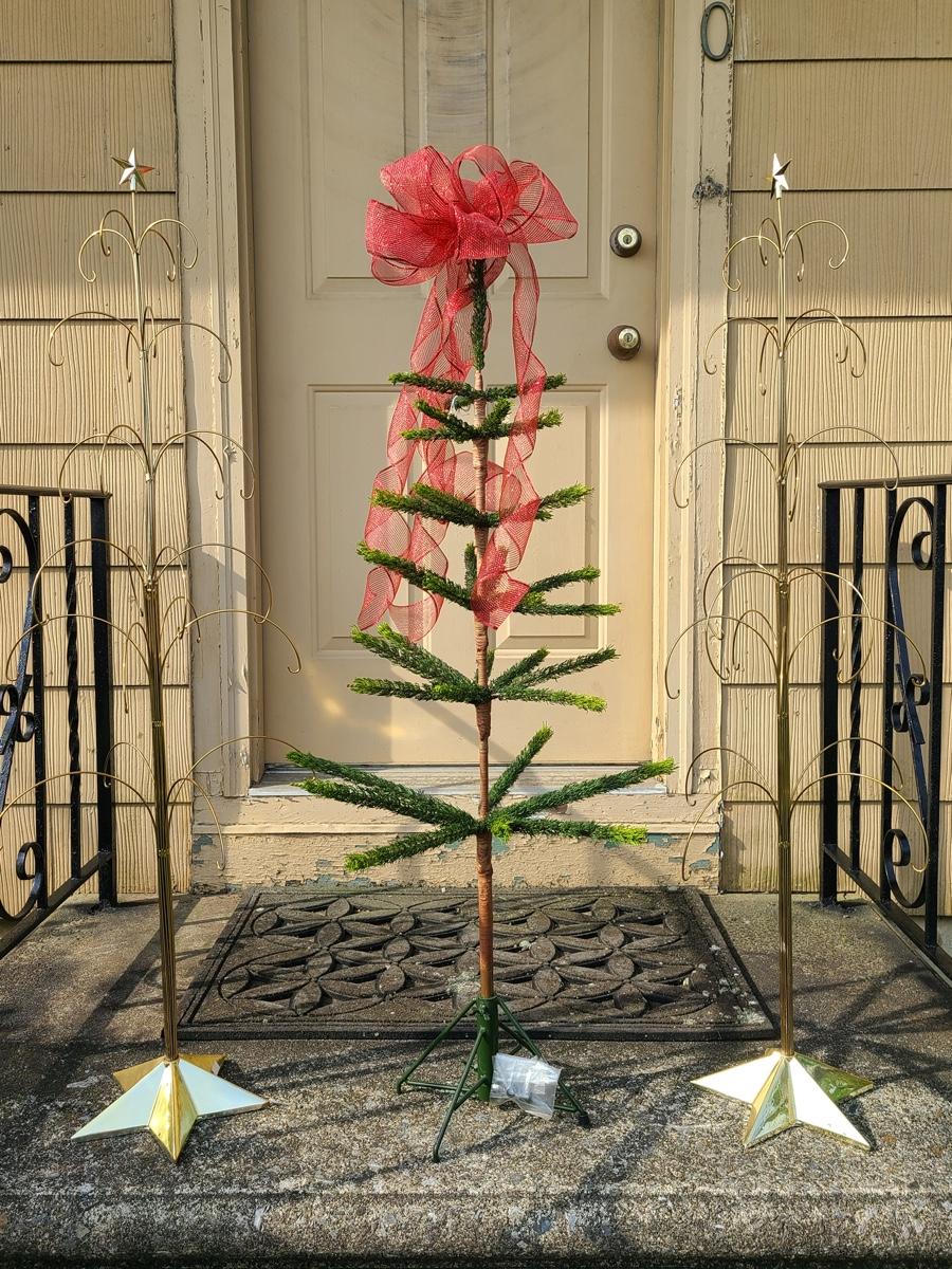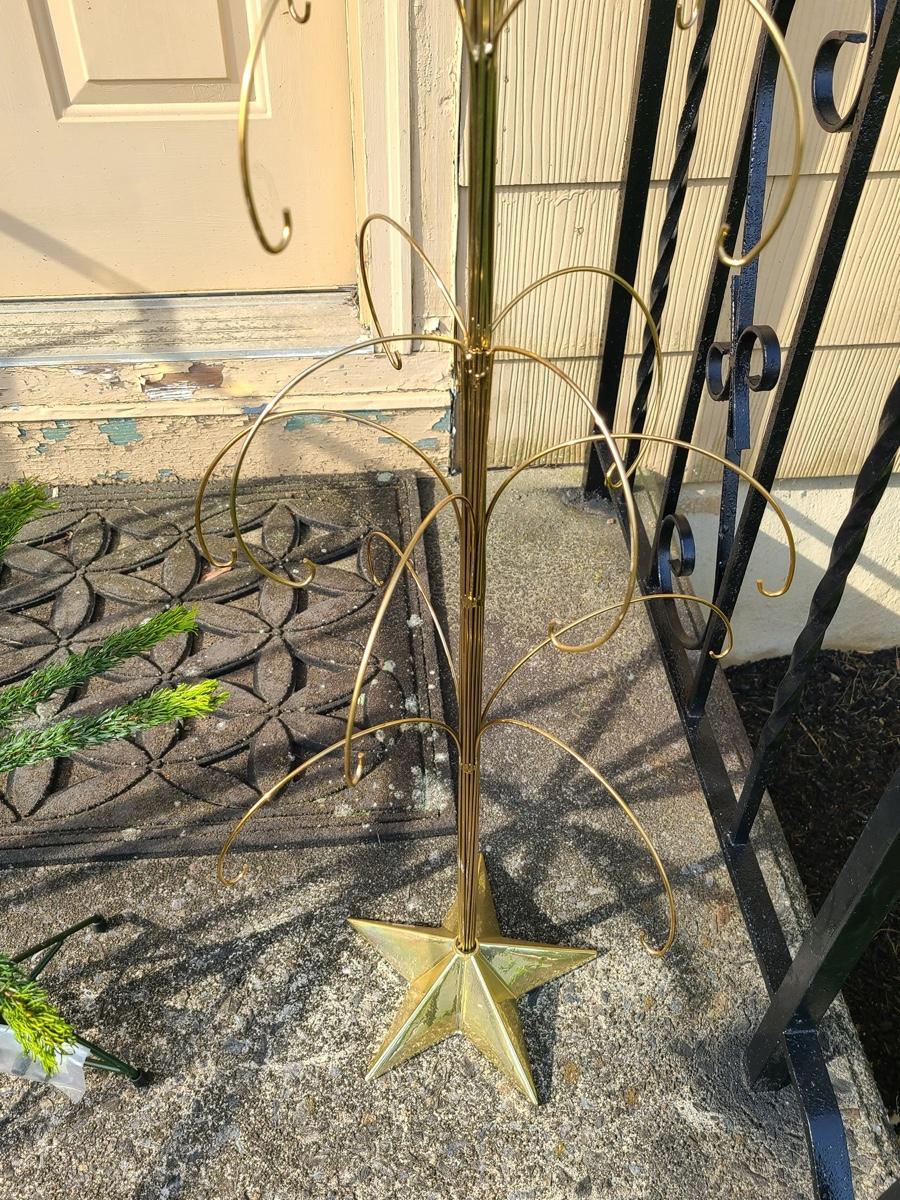 Lot 500: Two Gold Star Ornament Stands and Primitive Tree