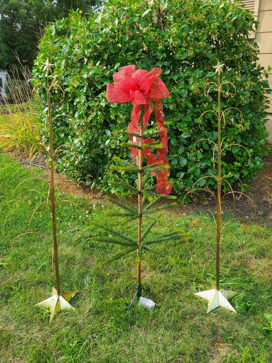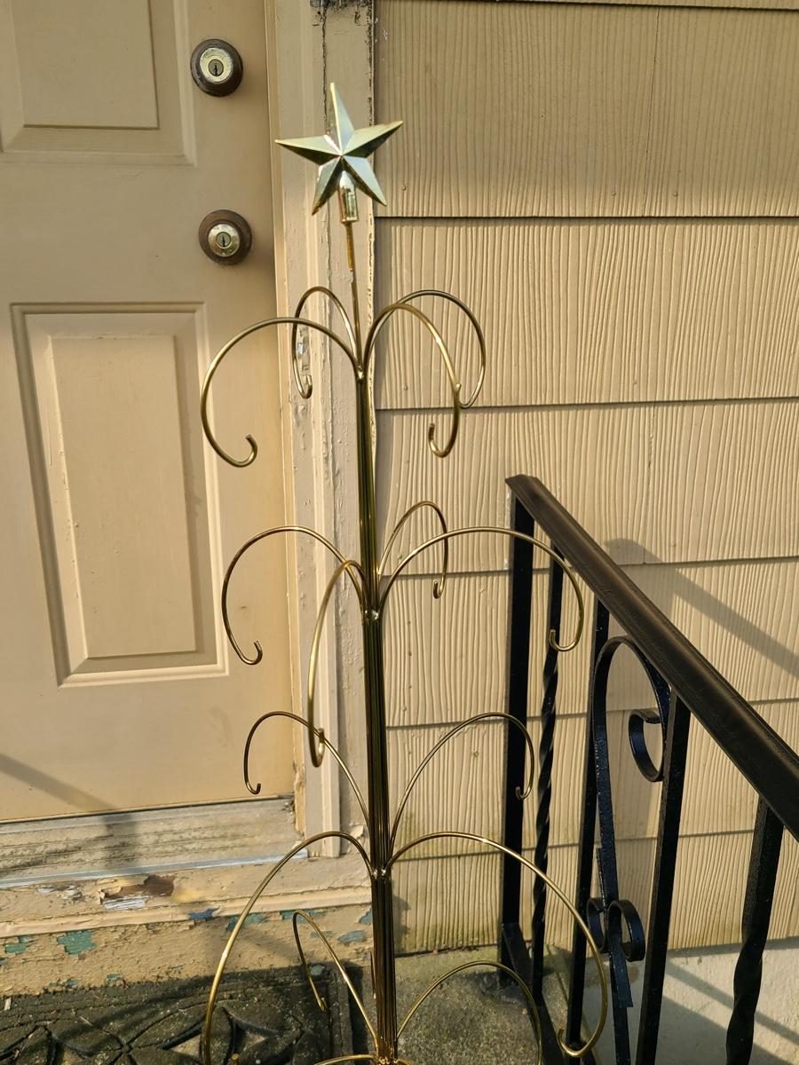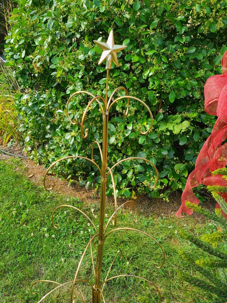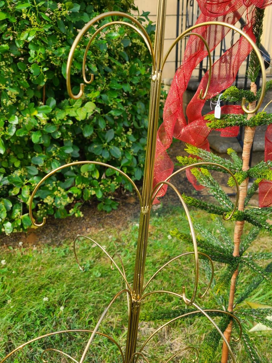 Lot 500: Two Gold Star Ornament Stands and Primitive Tree