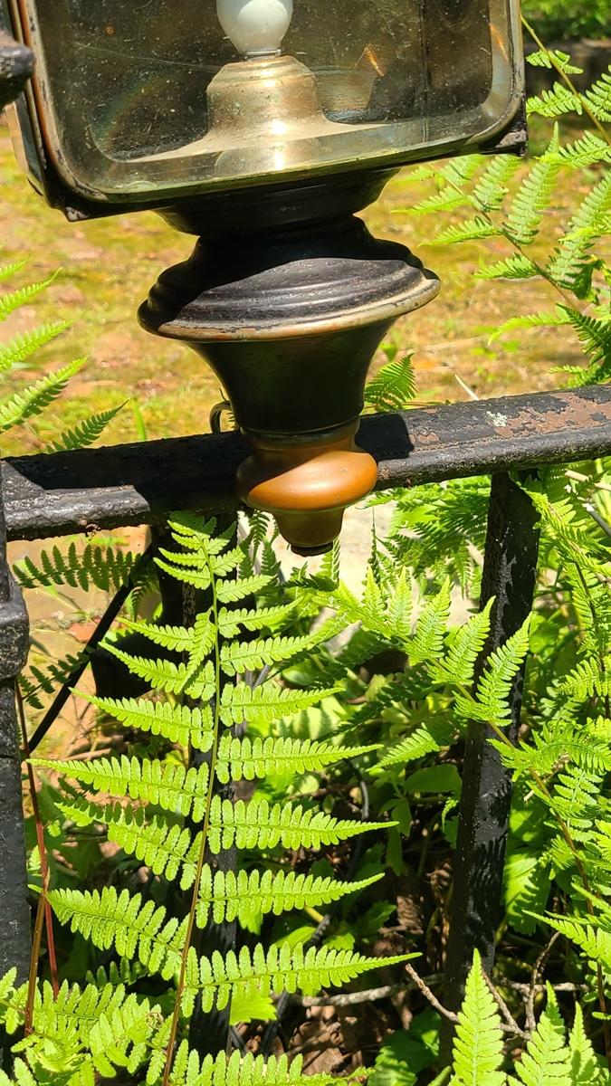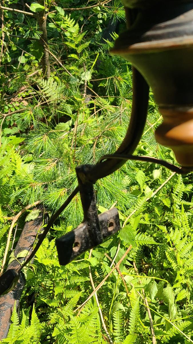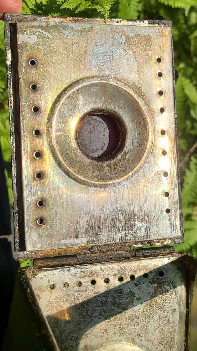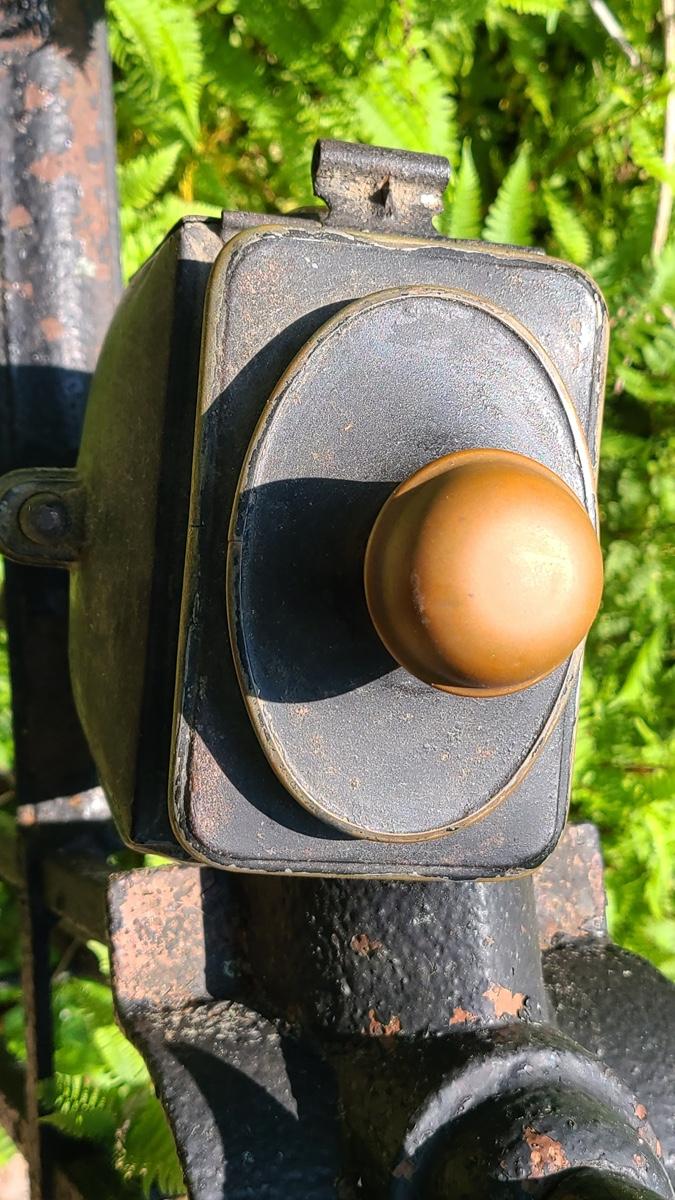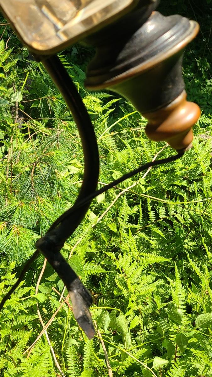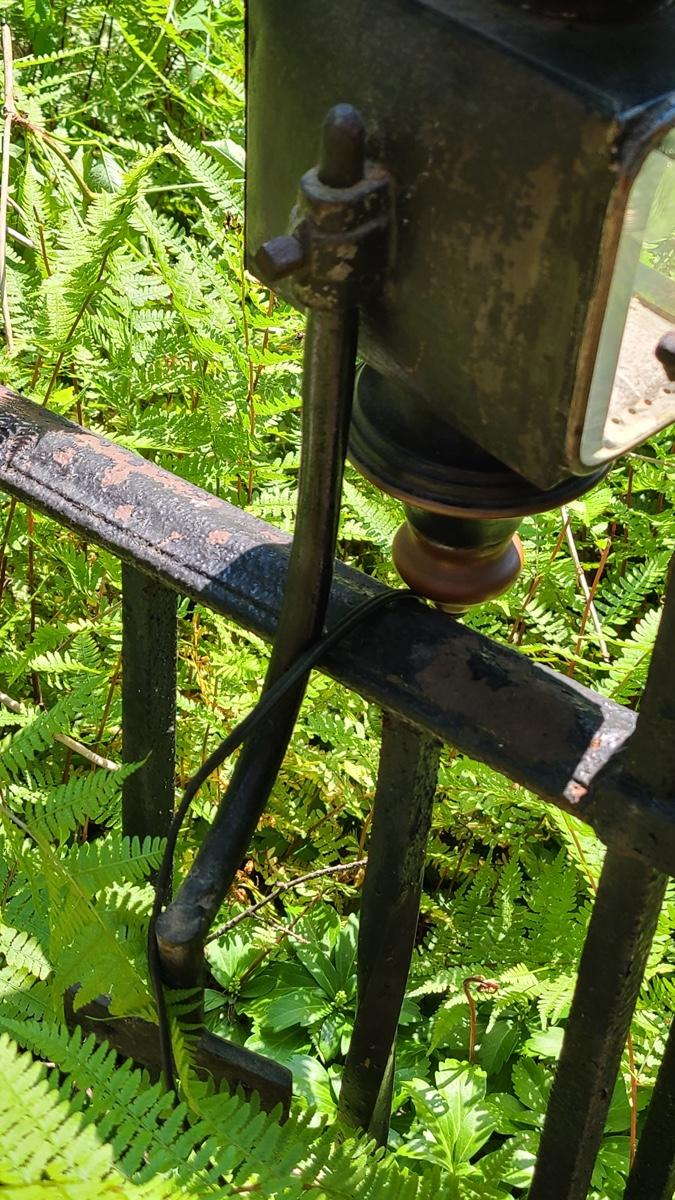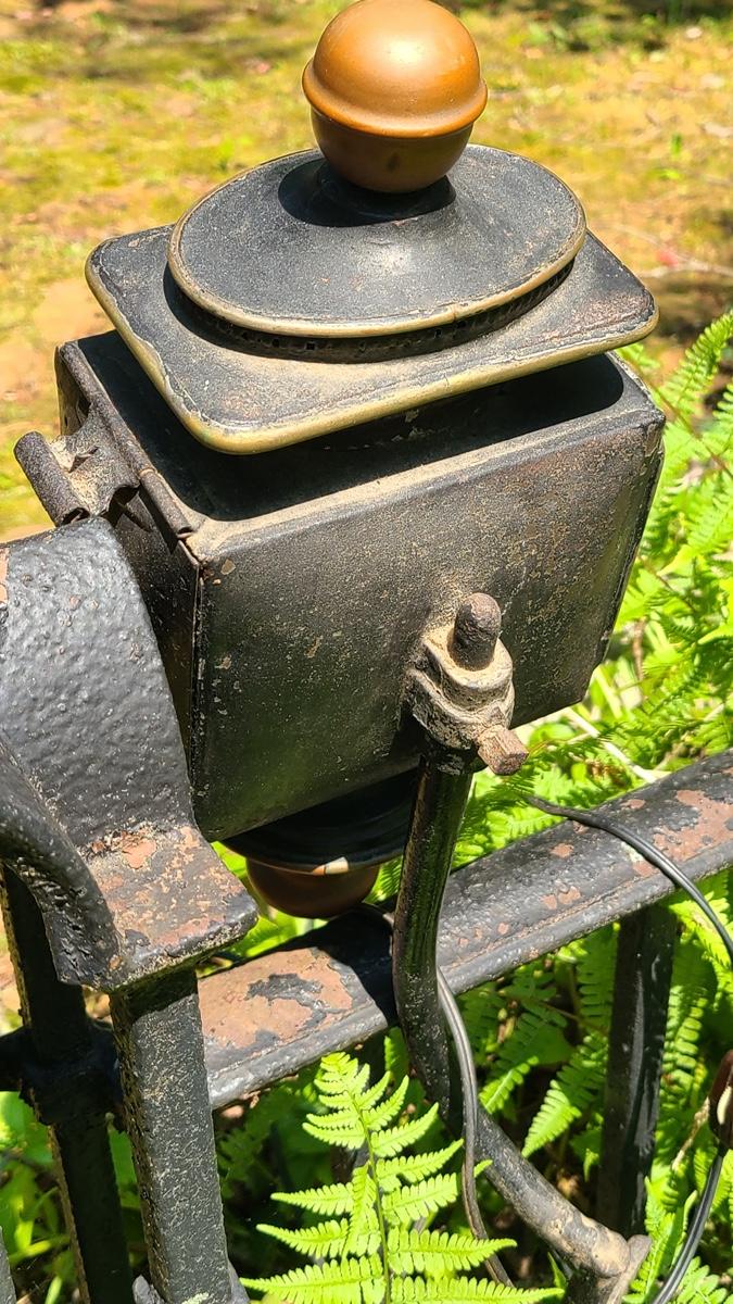 This is a such a unique piece of history. This would have been mounted on a carriage and it has the cast iron arm attached to mount to wall. This was wired to use in the home, and was mounted to a wood antique beam and cast a soft glow of light. It has original glass (side panel is broken but intact), side red glass, copper and black metal frame, and cast iron parts. Fun piece to own and a statement piece! Pictures are the best representation of the item in the lot, the condition of the items in the lot, and the size if measurements were taken. All items are sold as-is, since they are pre-owned and antiques. We are not experts and do our best to describe and pictures have been taken from every angle. Thank you for looking and have fun bidding.